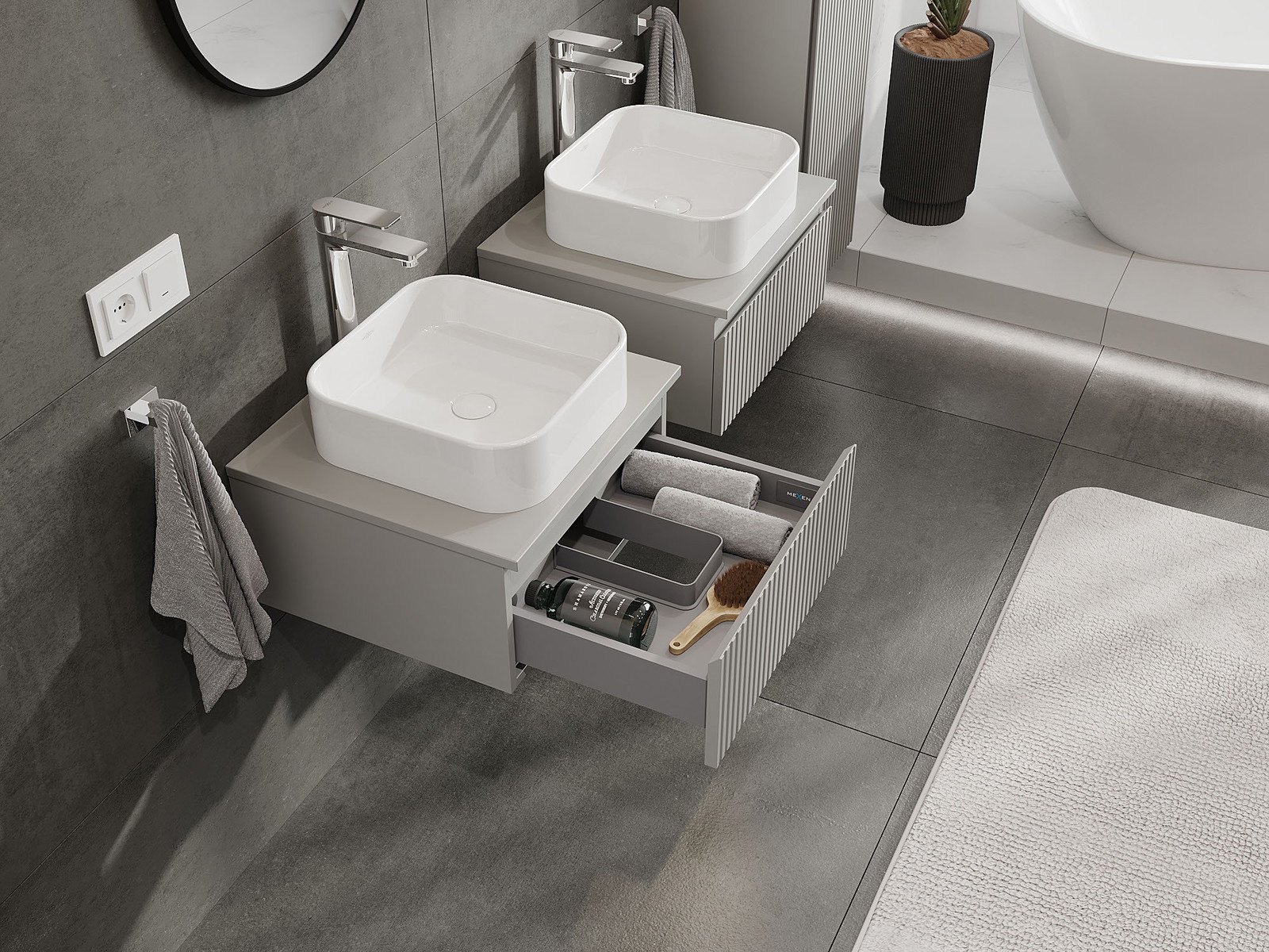 Mexen Rivel badrumsskåp under tvättställ 50 cm med bänkskiva, 1 låda, räfflad, grå matt - 91A20-05023-1-BFC62
