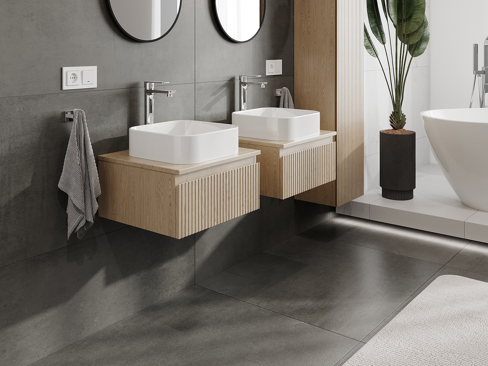 Mexen Rivel badrumsskåp 50 cm med bänkskiva, 1 låda, räfflad, ek - 91A20-05023-1-BFC81