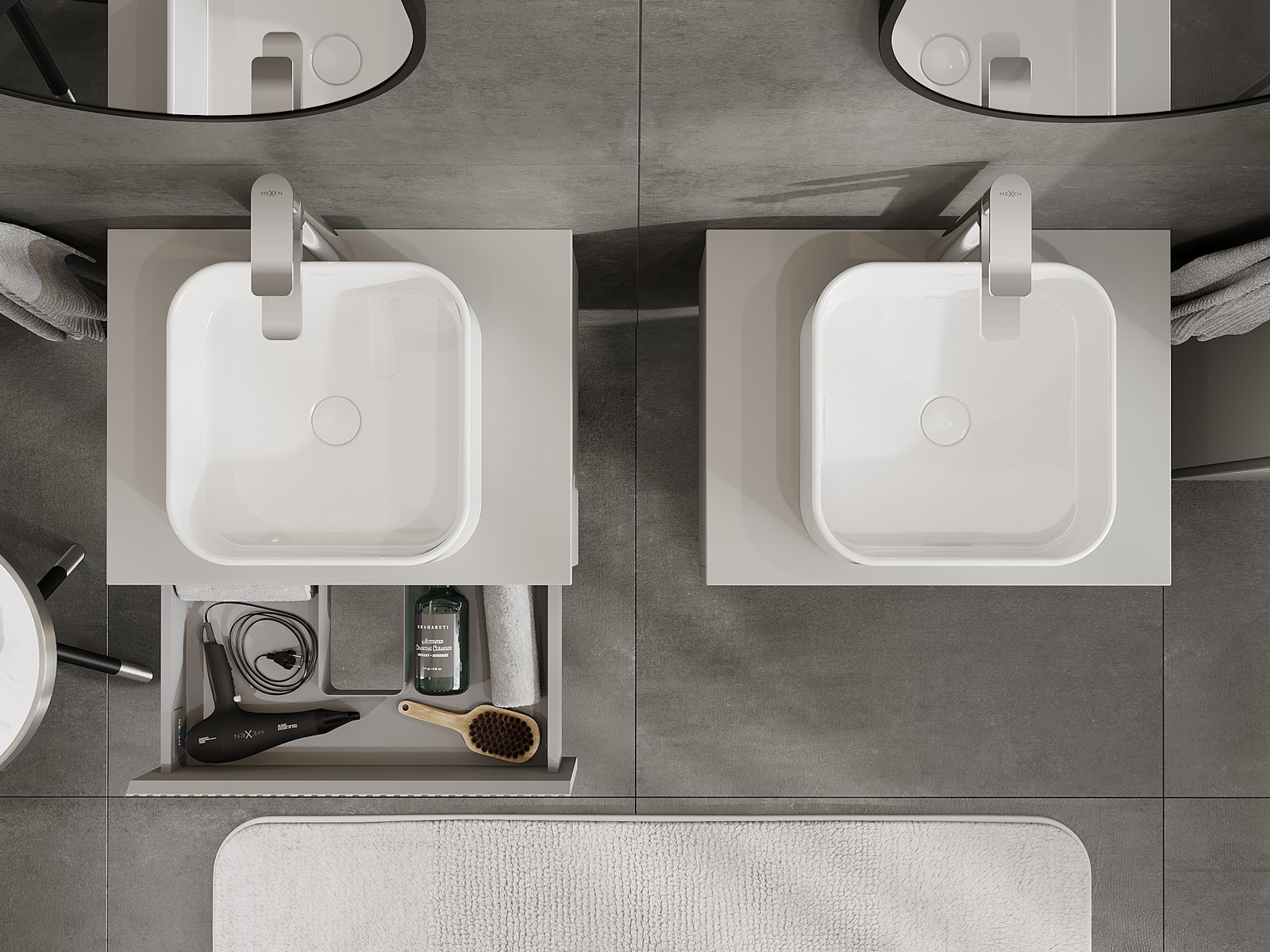 Utskärningen i lådan är utformad på ett sådant sätt att den rymmer vattenlåset som är nödvändigt i tvättställsinstallationer. Tack vare detta kan möbeln installeras fullt ut funktionellt, utan att behöva avstå från utrymme i lådan för installationen.