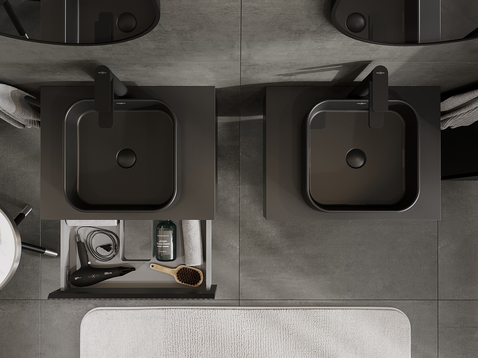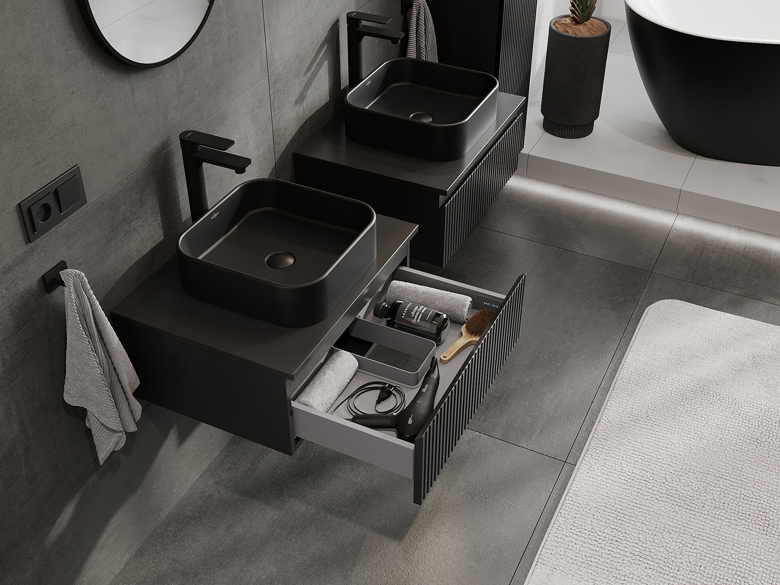 Mexen Rivel badrumsskåp för tvättställ 60 cm med bänkskiva, 1 låda, räfflad, svart matt - 91A20-06023-1-BFC71