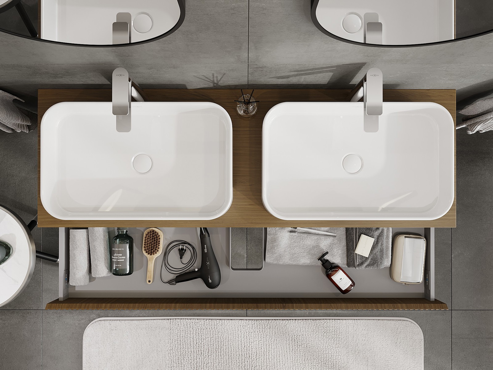 Mexen Rivel badrumsskåp under handfat 140 cm med bänkskiva, 1 låda, räfflad, valnöt - 91A20-14023-1-BFC86
