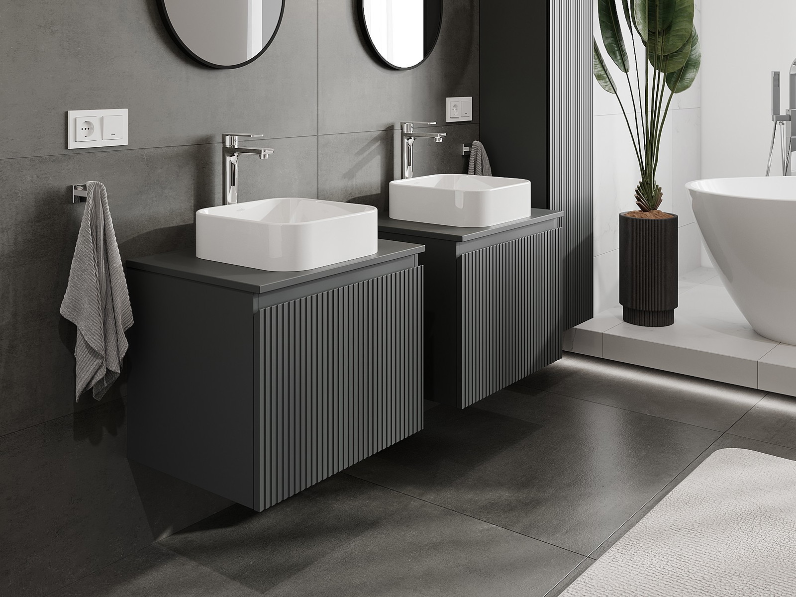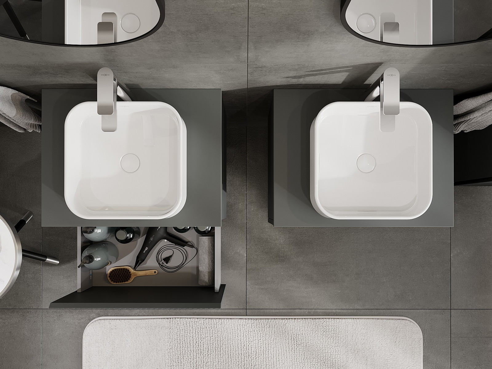 Mexen Rivel badrumsskåp under tvättställ 60 cm med bänkskiva, 1 låda, rillat, matt grafit - 91A20-06047-1-BFC66
