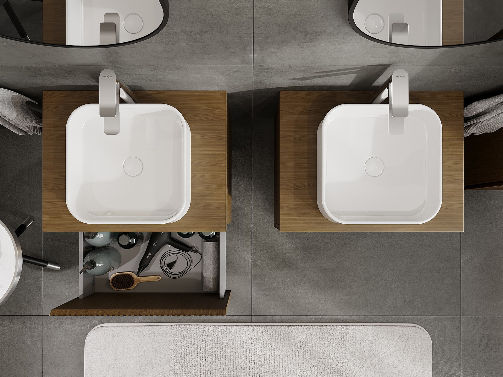 Mexen Rivel badrumsskåp under tvättställ 60 cm med bänkskiva, 1 låda, räfflad, valnöt - 91A20-06047-1-BFC86