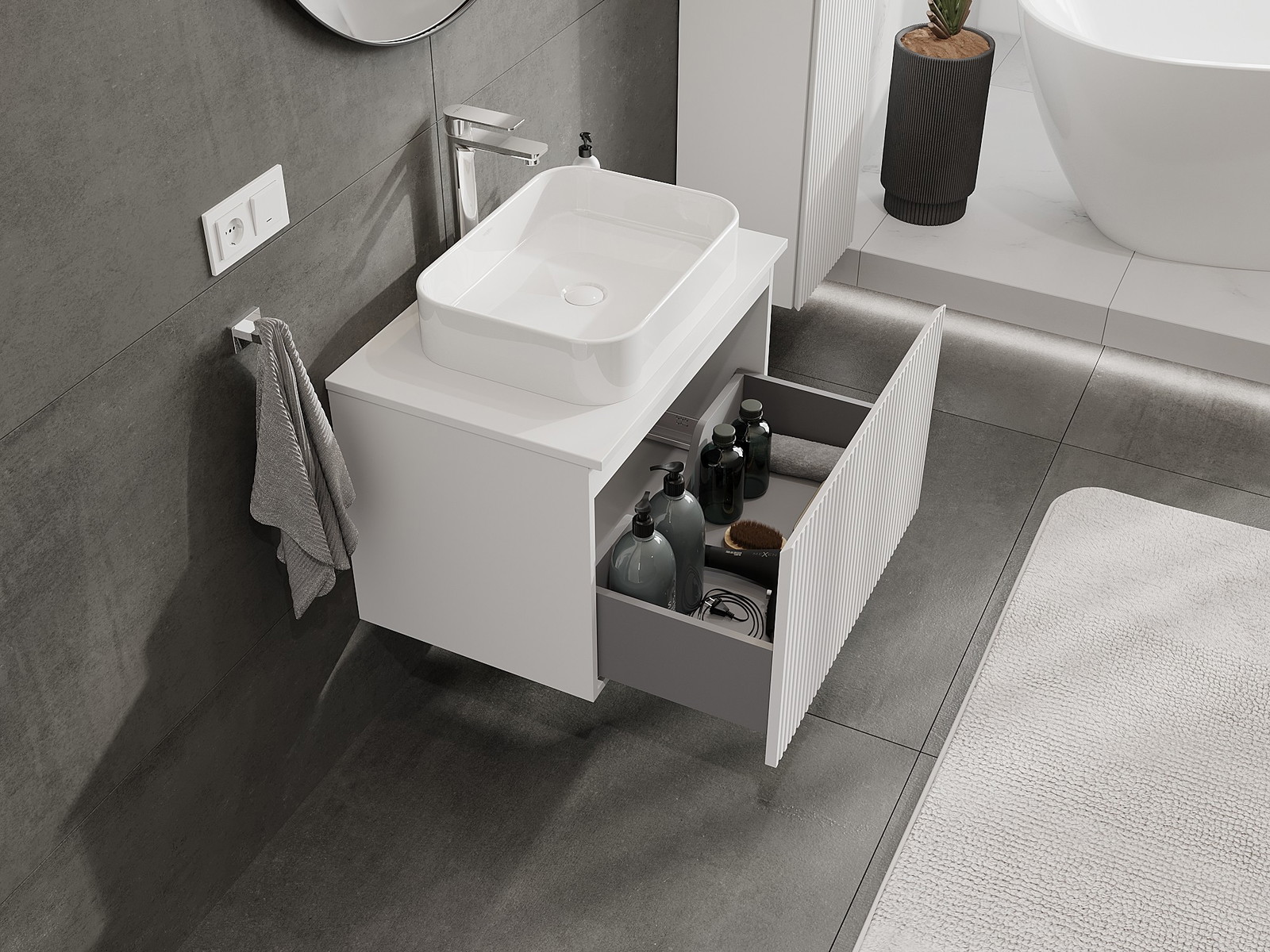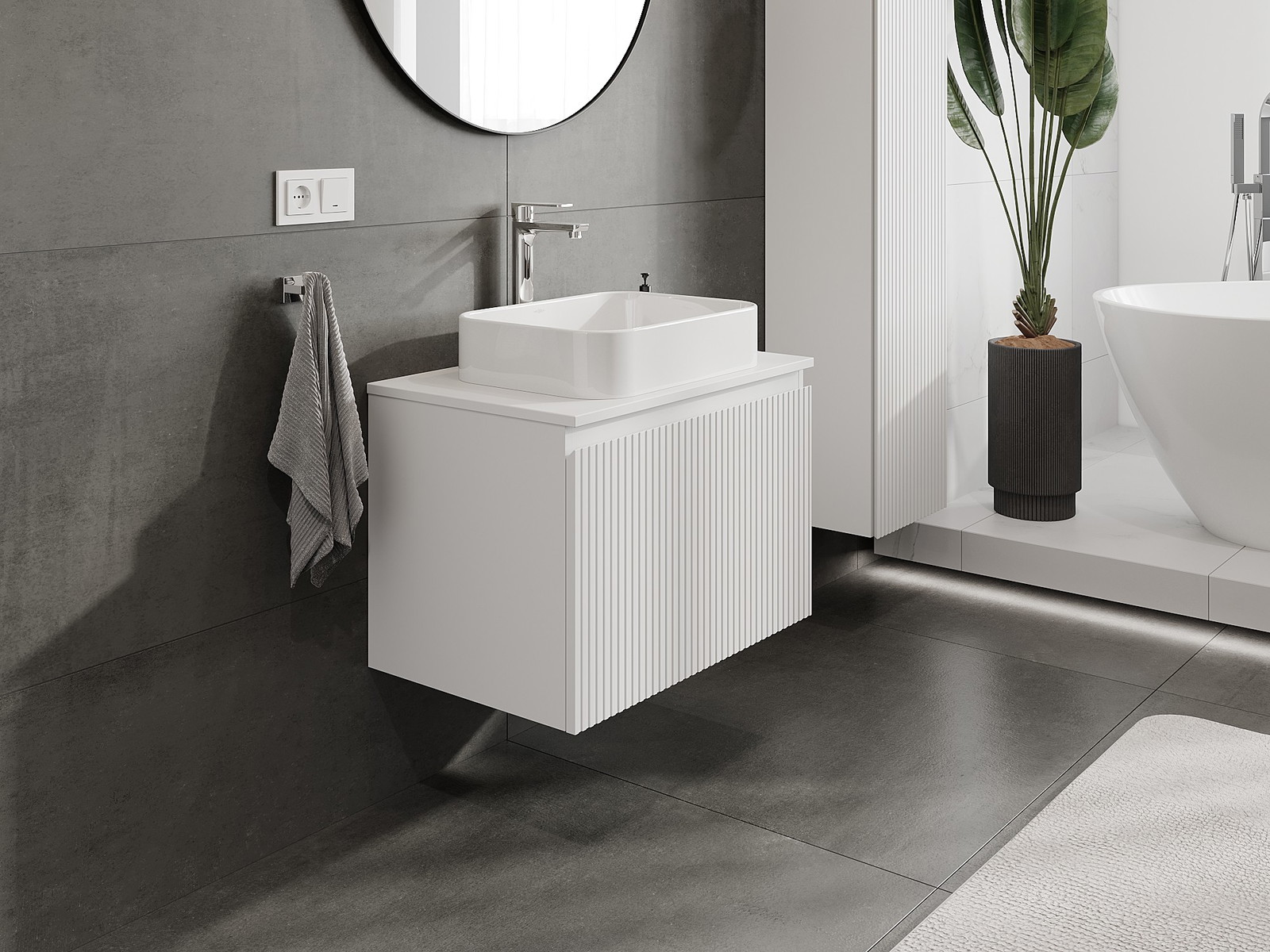 Mexen Rivel badrumsskåp under tvättställ 70 cm med bänkskiva, 1 låda, räfflad, vit matt - 91A20-07047-1-BFC01
