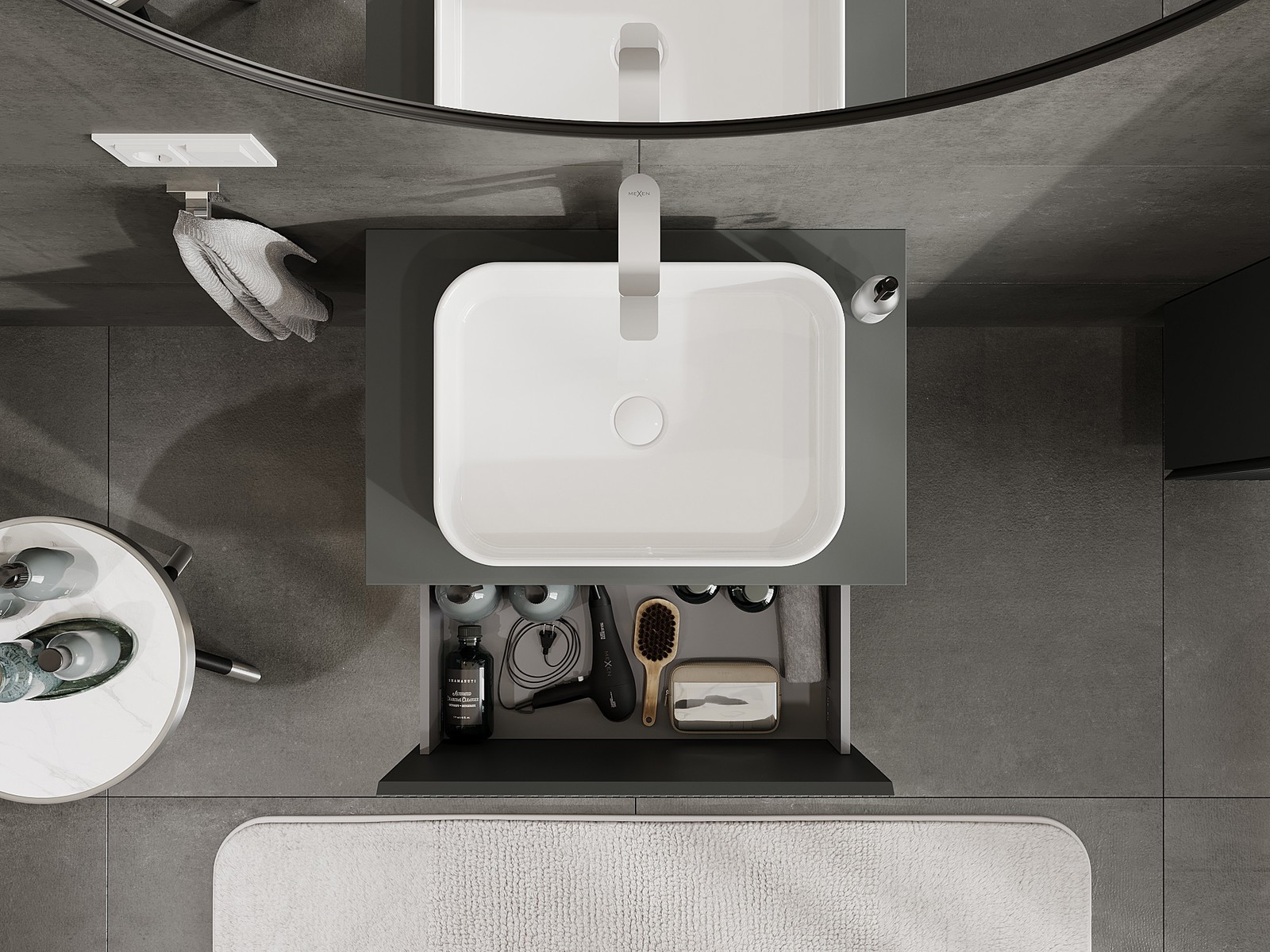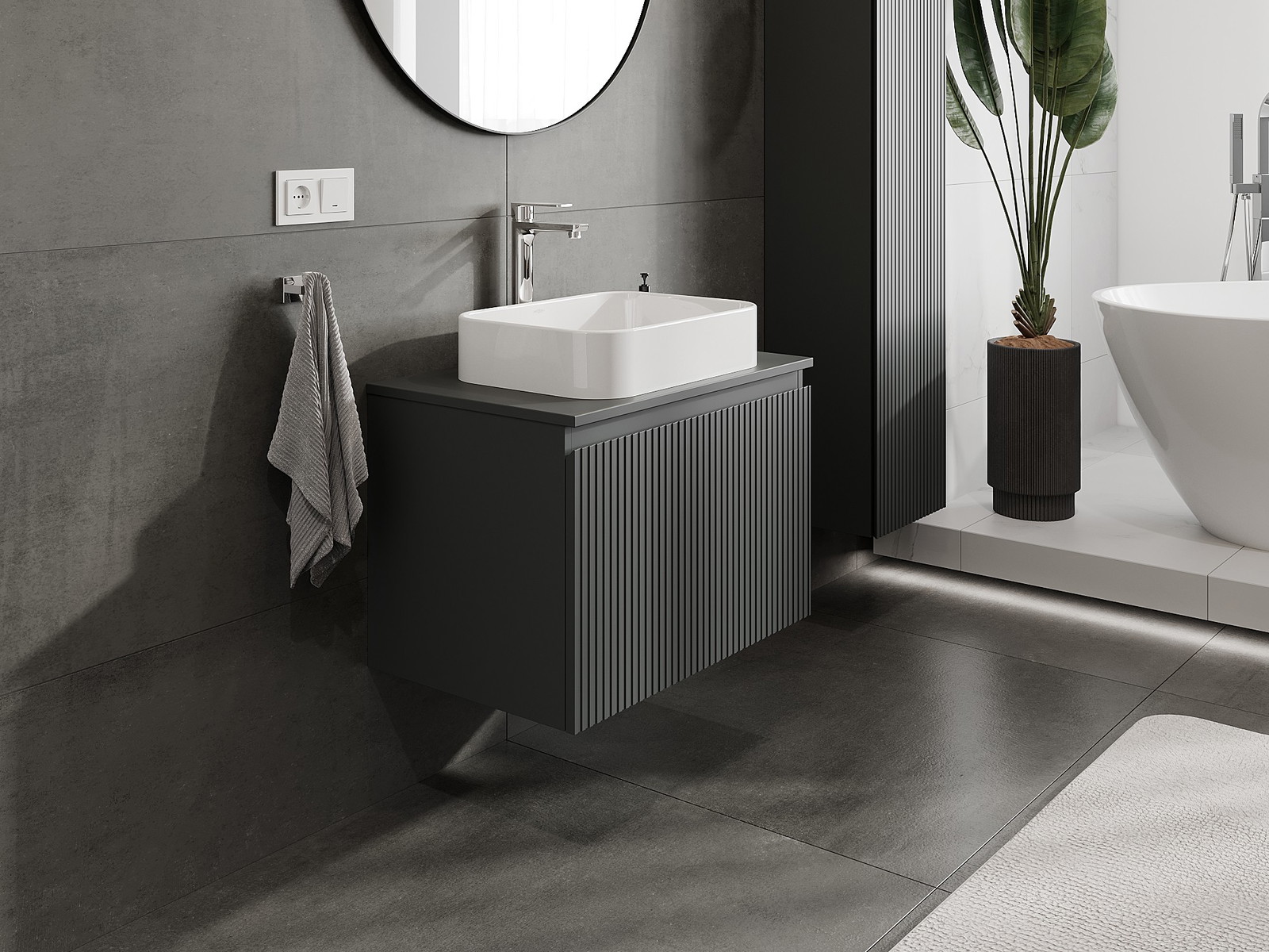 Mexen Rivel badrumsskåp för diskho 70 cm med bänkskiva, 1 låda, ribbad, grafit matt - 91A20-07047-1-BFC66