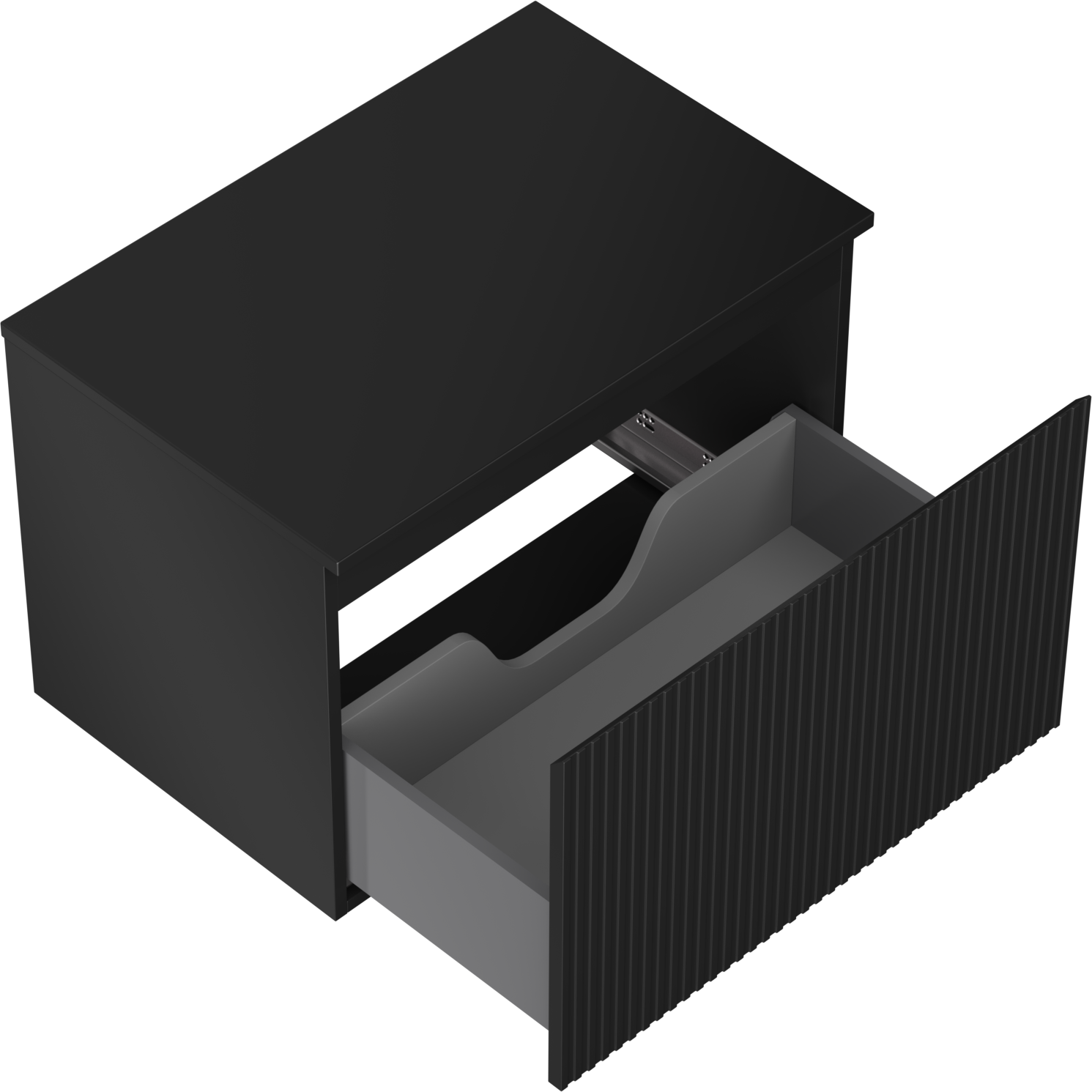 Mexen Rivel badrumsskåp under tvättställ 70 cm med bänkskiva, 1 låda, räfflad, svart matt - 91A20-07047-1-BFC71