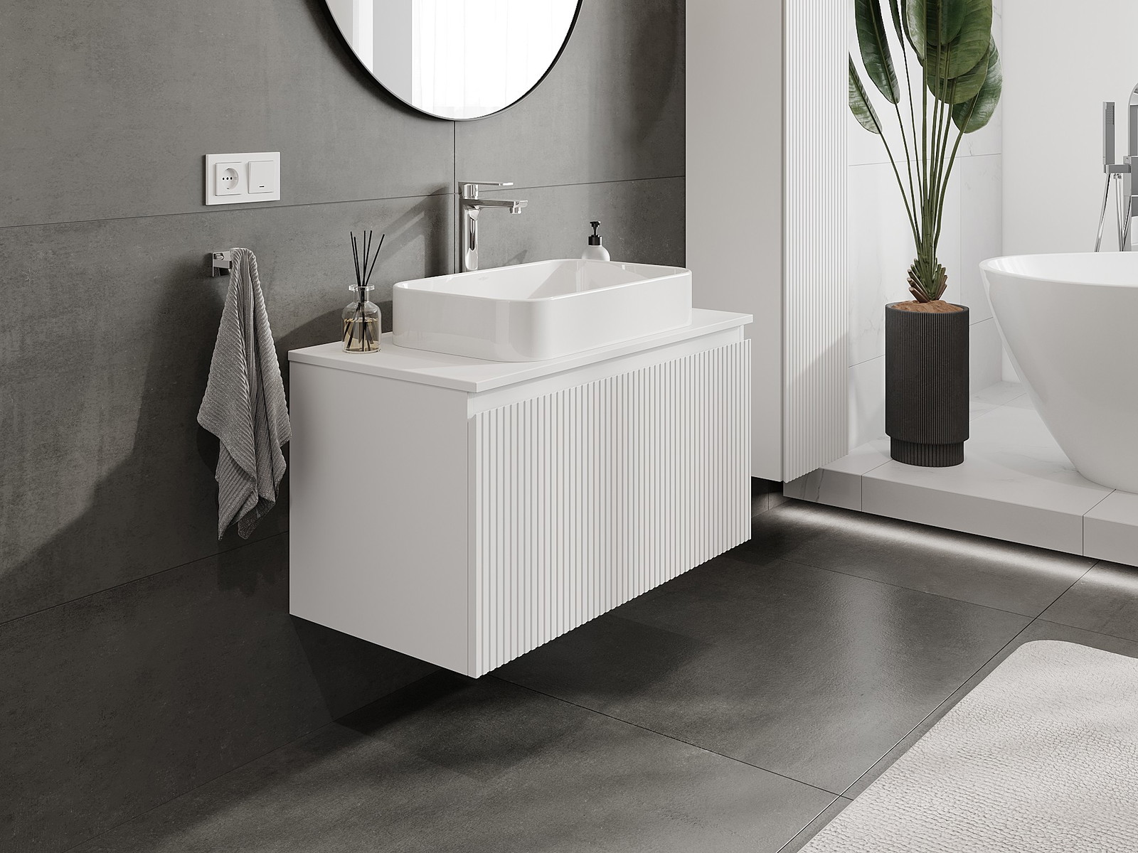 Mexen Rivel badrumsskåp under handfat 90 cm med bänkskiva, 1 låda, räfflad, vit matt - 91A20-09047-1-BFC01