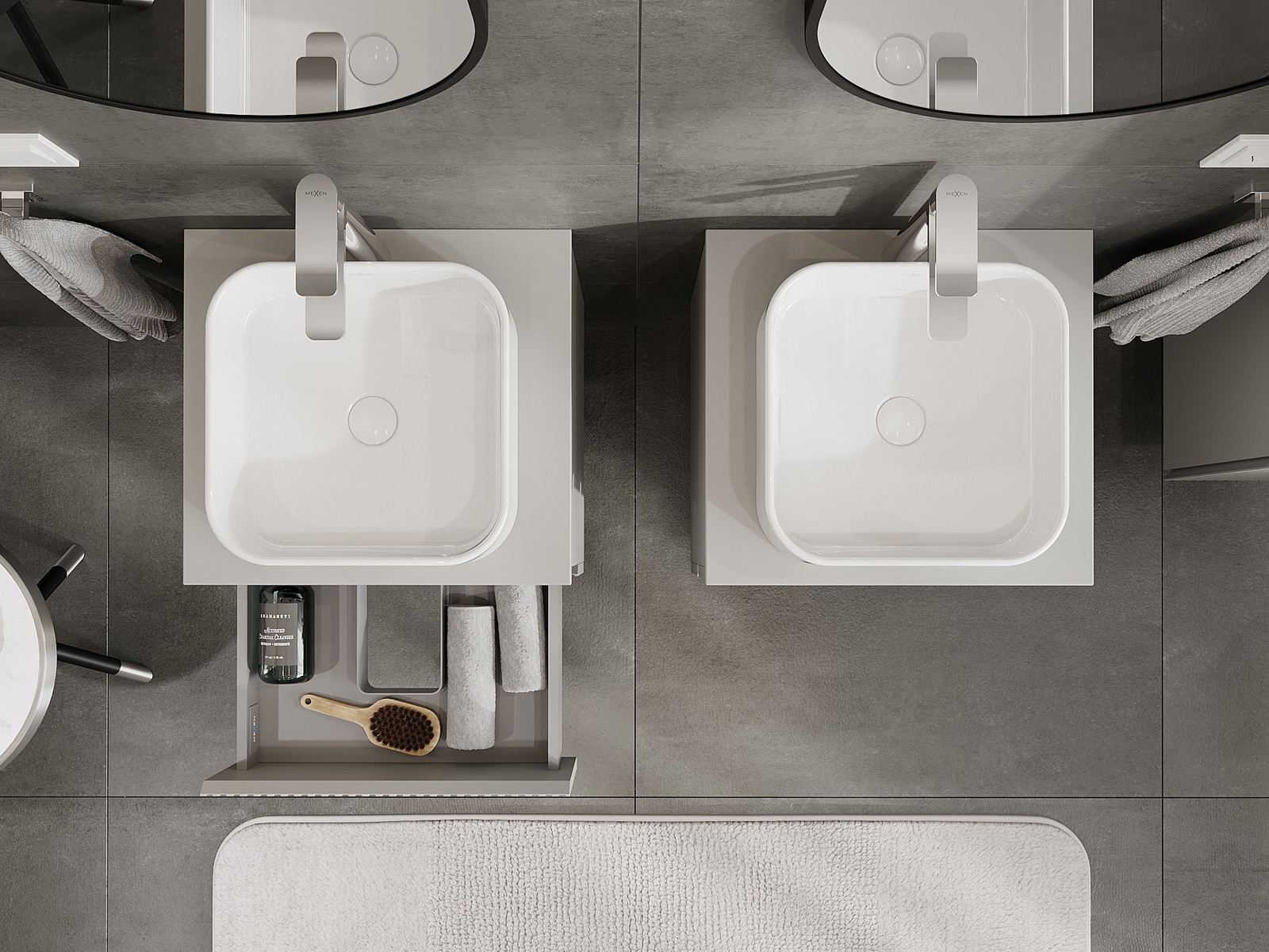 Mexen Rivel badrumsskåp under tvättställ 50 cm med bänkskiva, 2 lådor, räfflad, grå matt - 91A20-05047-2-BFFC62