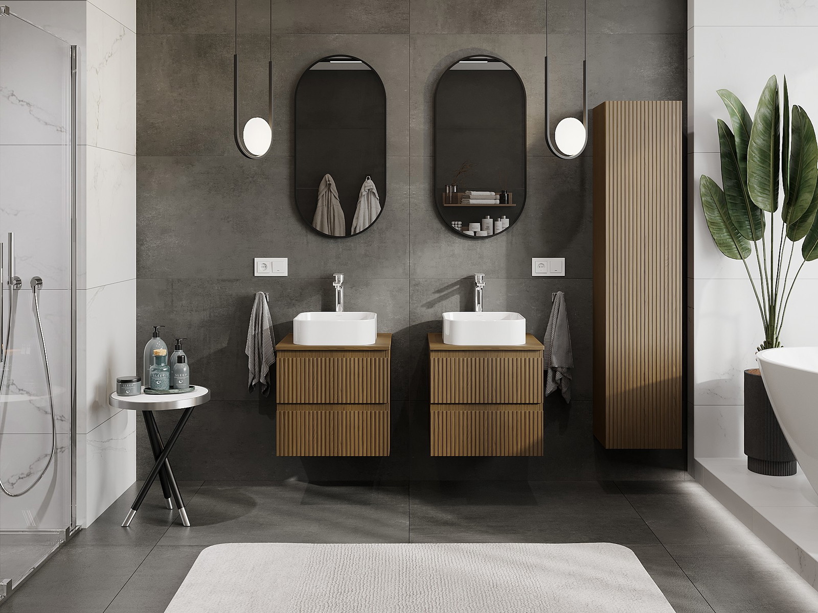 Våra modulära badrumsmöbler kan kombineras i olika färgkonfigurationer, vilket möjliggör fullständig personalisering. Du kan välja både utseende och funktioner för respektive delar, vilket gör att möblerna kan anpassas till dina egna stilistiska och funktionella preferenser.