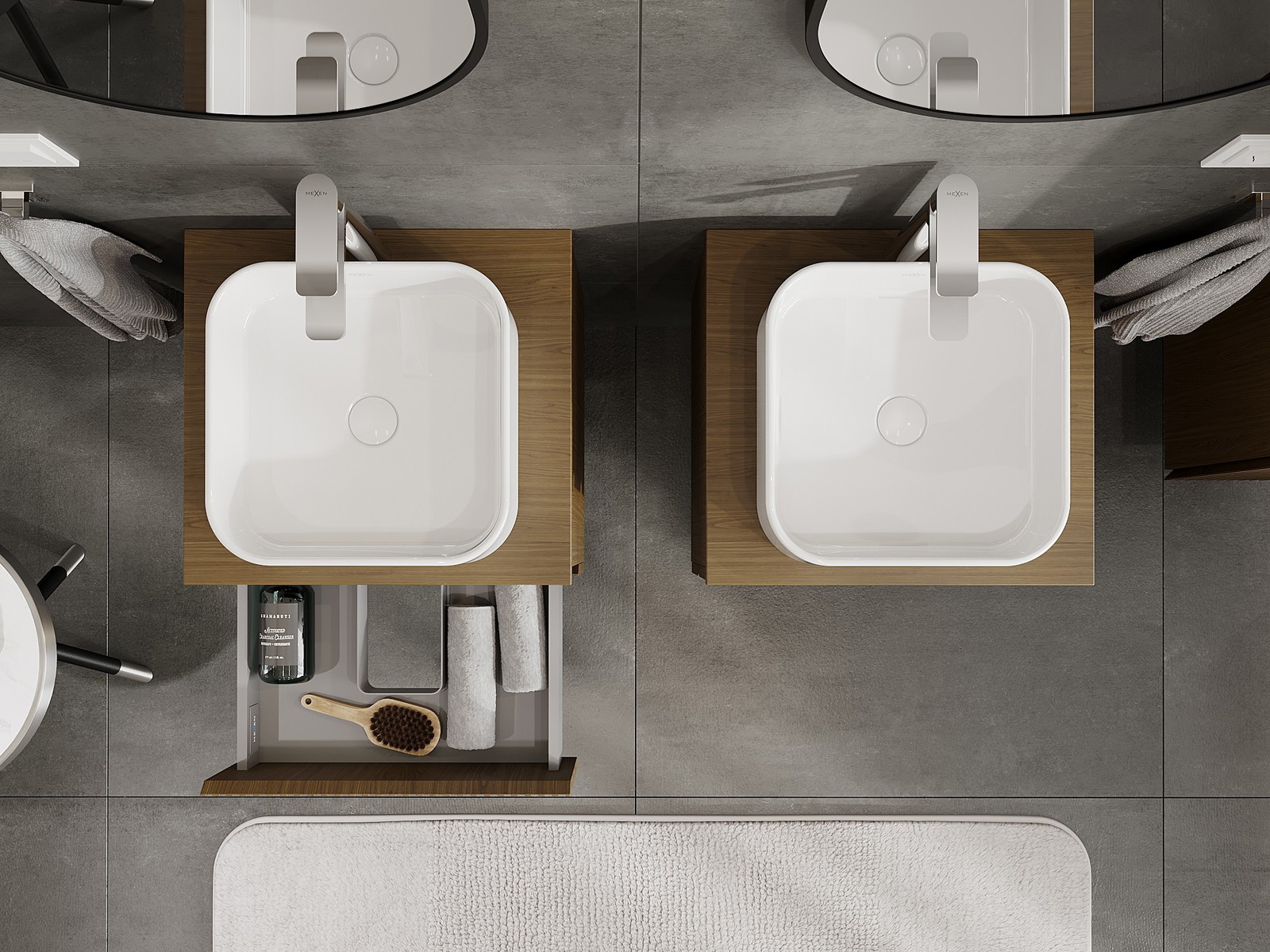 Mexen Rivel badrumsskåp under handfat 50 cm med bänkskiva, 2 lådor, räfflad, valnöt - 91A20-05047-2-BFFC86