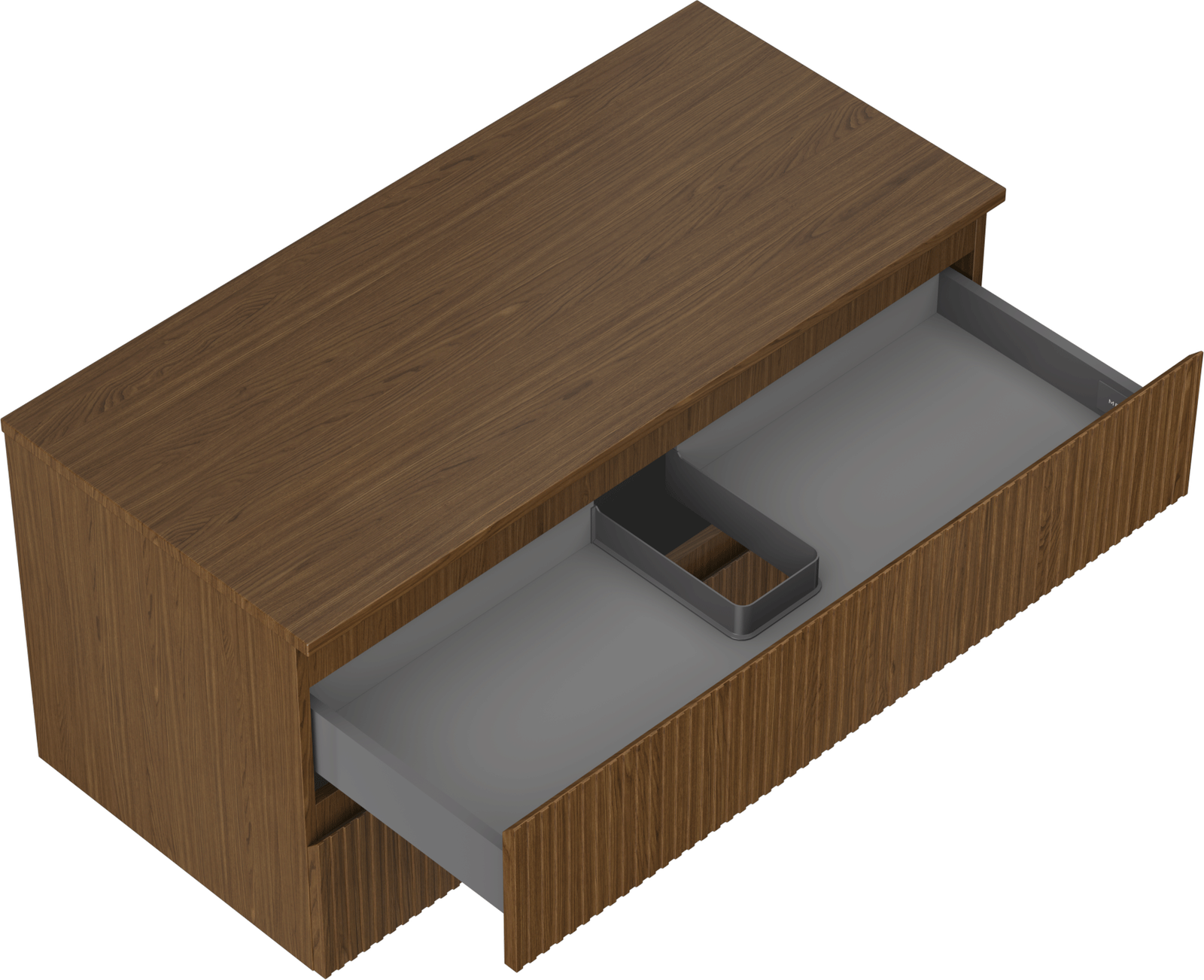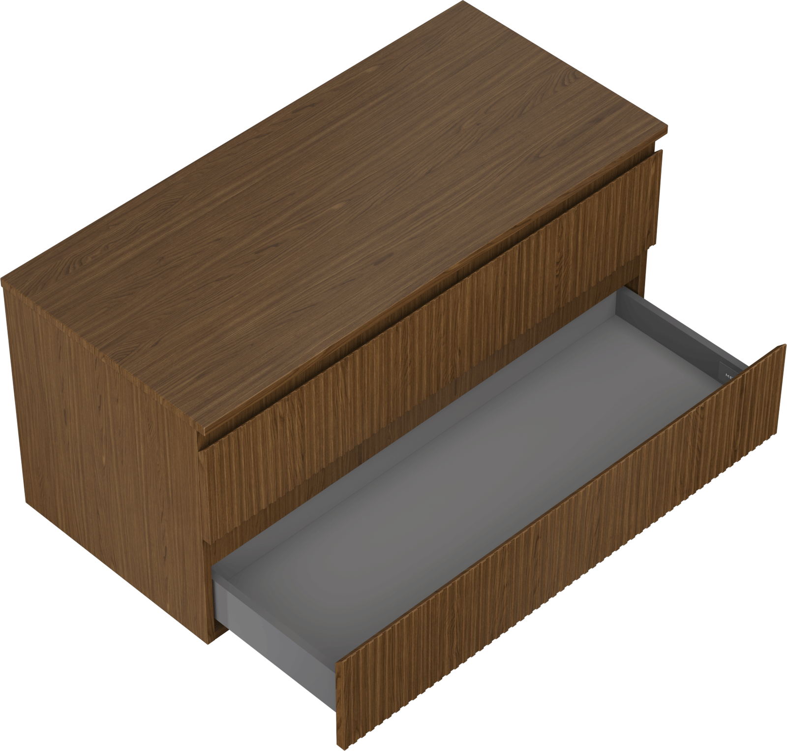 Mexen Rivel badrumsskåp under tvättställ 100 cm med bänk, 2 lådor, räfflad, valnöt - 91A20-10047-2-BFFC86