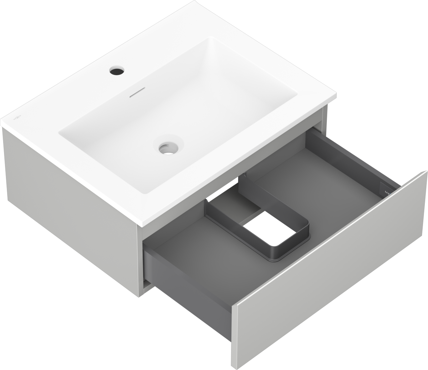 Utskärningen i lådan är utformad på ett sådant sätt att den rymmer vattenlåset som är nödvändigt i tvättställsinstallationer. Tack vare detta kan möbeln installeras fullt ut funktionellt, utan att behöva avstå från utrymme i lådan för installationen.