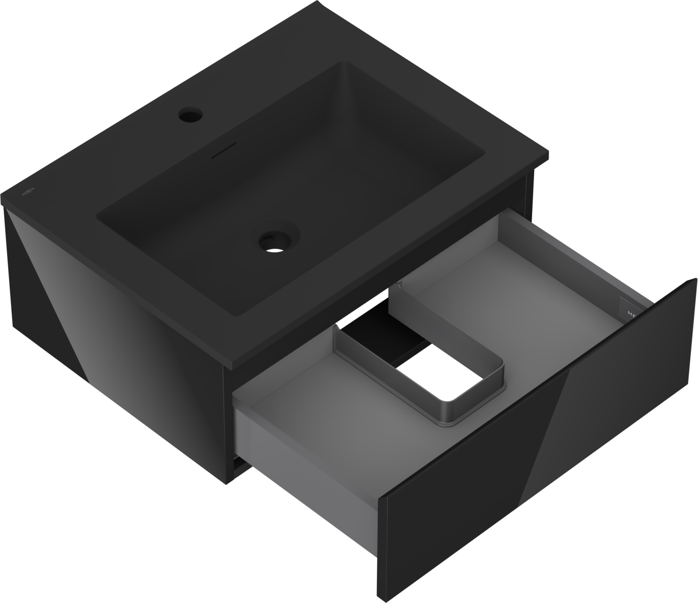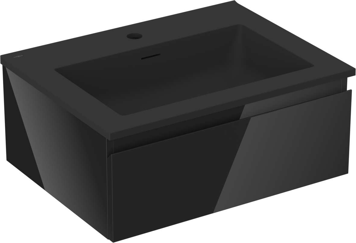Mexen Orio badrumsskåp 60 cm med handfat Otis, 1 låda, svart glans/svart matt - 91A10-06023-1-BF70-W18M71