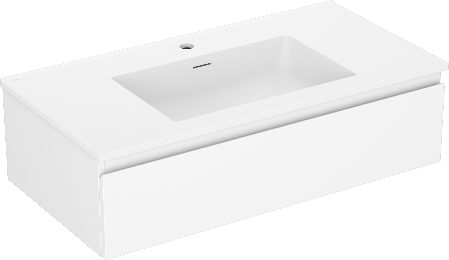 Mexen Orio badrumsskåp 90 cm med handfat Otis, 1 låda, vit matt - 91A10-09023-1-BF01-W18M01