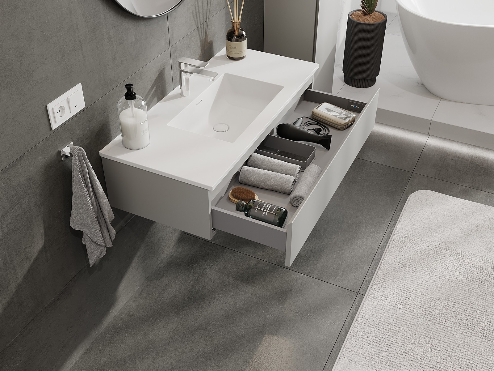 Mexen Orio 100 cm badrumsskåp med Otis handfat, 1 låda, grå matt/vit matt - 91A10-10023-1-BF62-W18M01