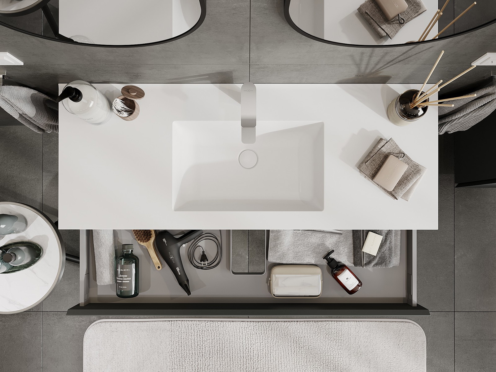 Mexen Orio badrumsskåp 120 cm med handfat Otis, 1 låda, grafit matt/vit matt - 91A10-12023-1-BF66-W18M01