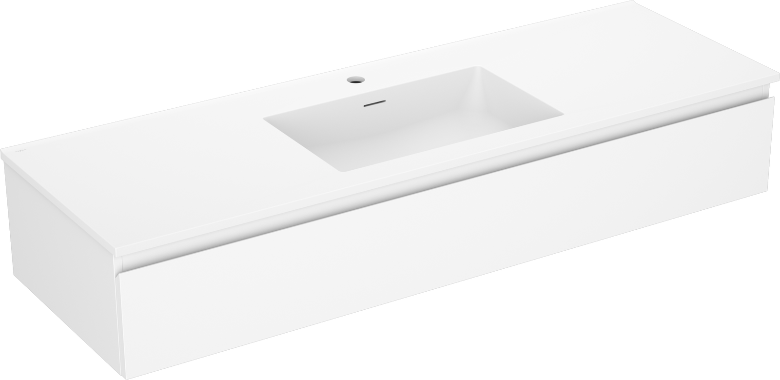 Mexen Orio 140 cm badrumsskåp med handfat Otis, 1 låda, vit matt - 91A10-14023-1-BF01-W18M01