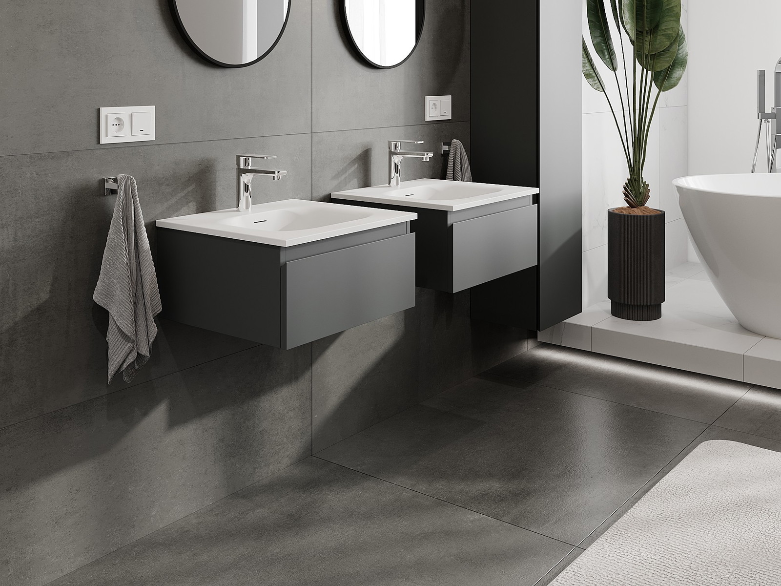 Mexen Orio 50 cm badrumsskåp med handfat Vela, 1 låda, grafit matt/vit matt - 91A10-05023-1-BF66-W23M01