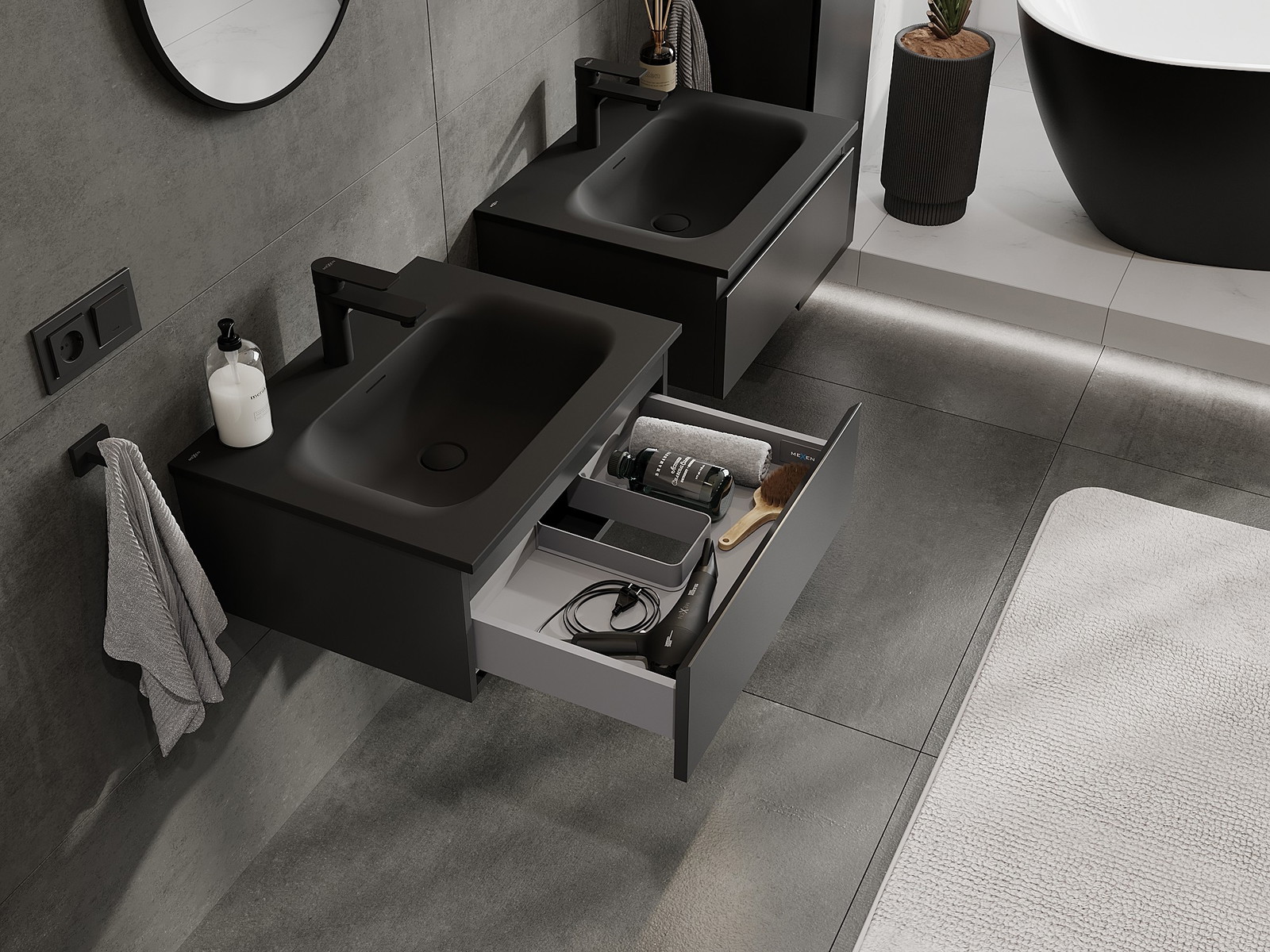 Mexen Orio badrumsskåp 60 cm med tvättställ Vela, 1 låda, svart matt - 91A10-06023-1-BF71-W23M71