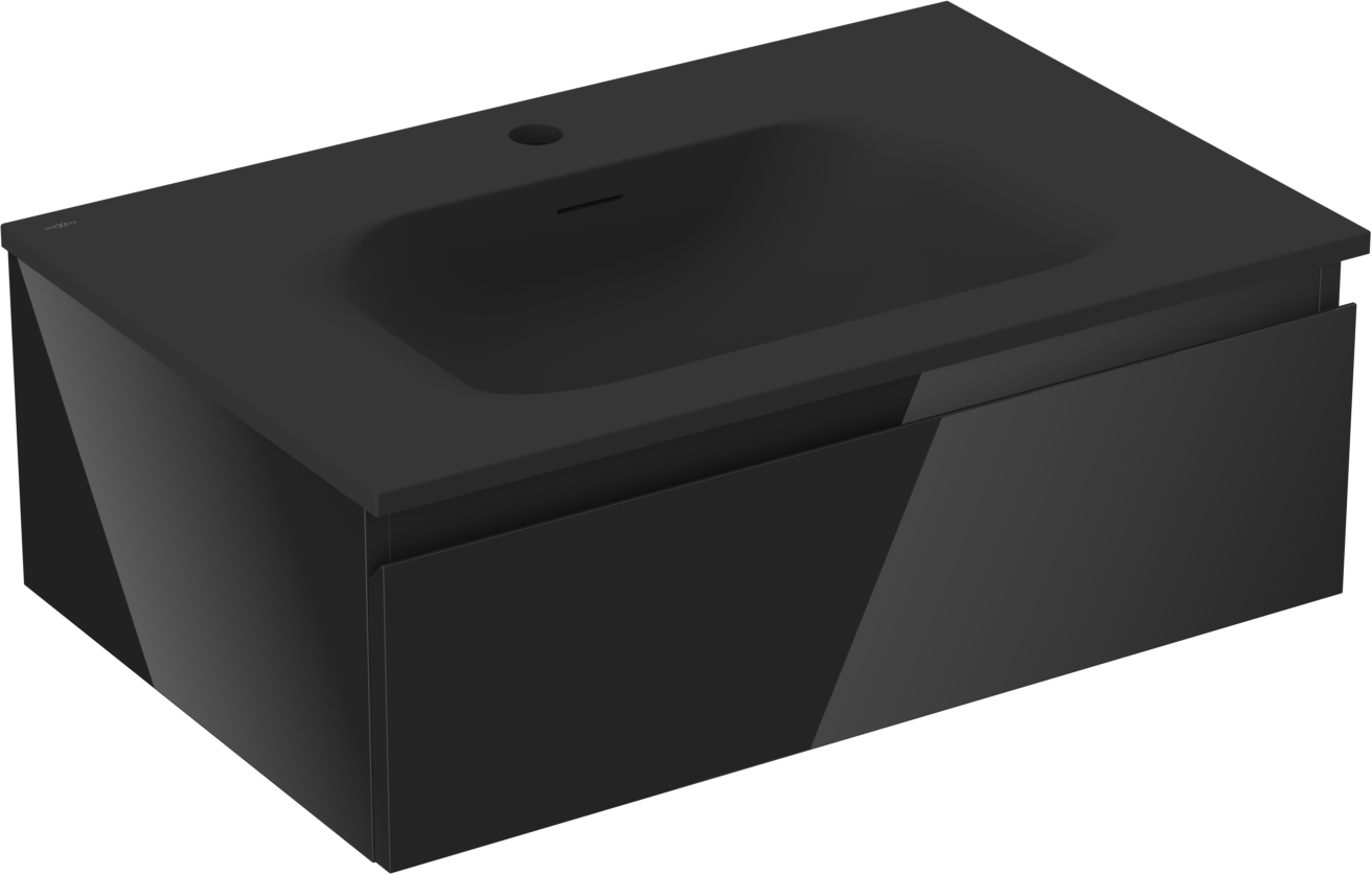 Mexen Orio badrumsskåp 70 cm med tvättställ Vela, 1 låda, svart glans/svart matt - 91A10-07023-1-BF70-W23M71