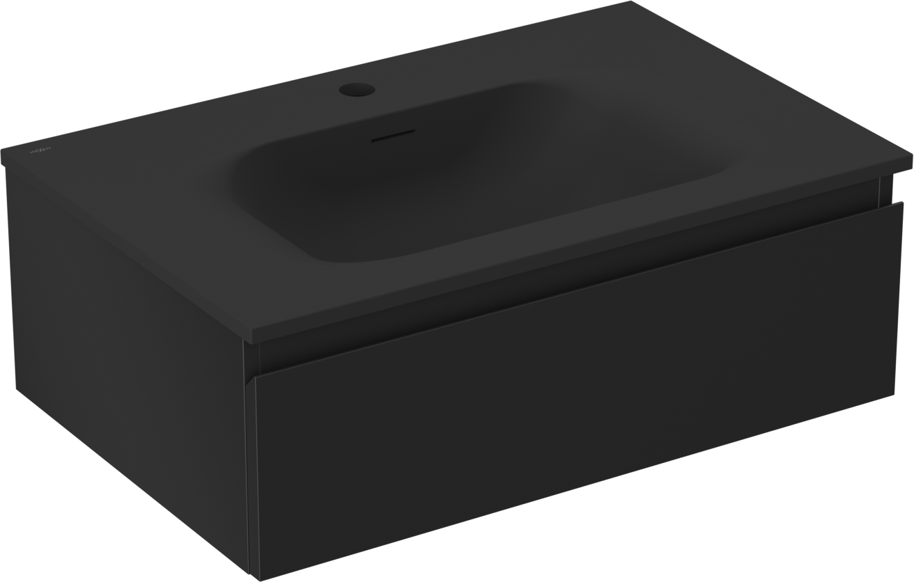 Mexen Orio badrumsskåp 70 cm med handfat Vela, 1 låda, svart matt - 91A10-07023-1-BF71-W23M71