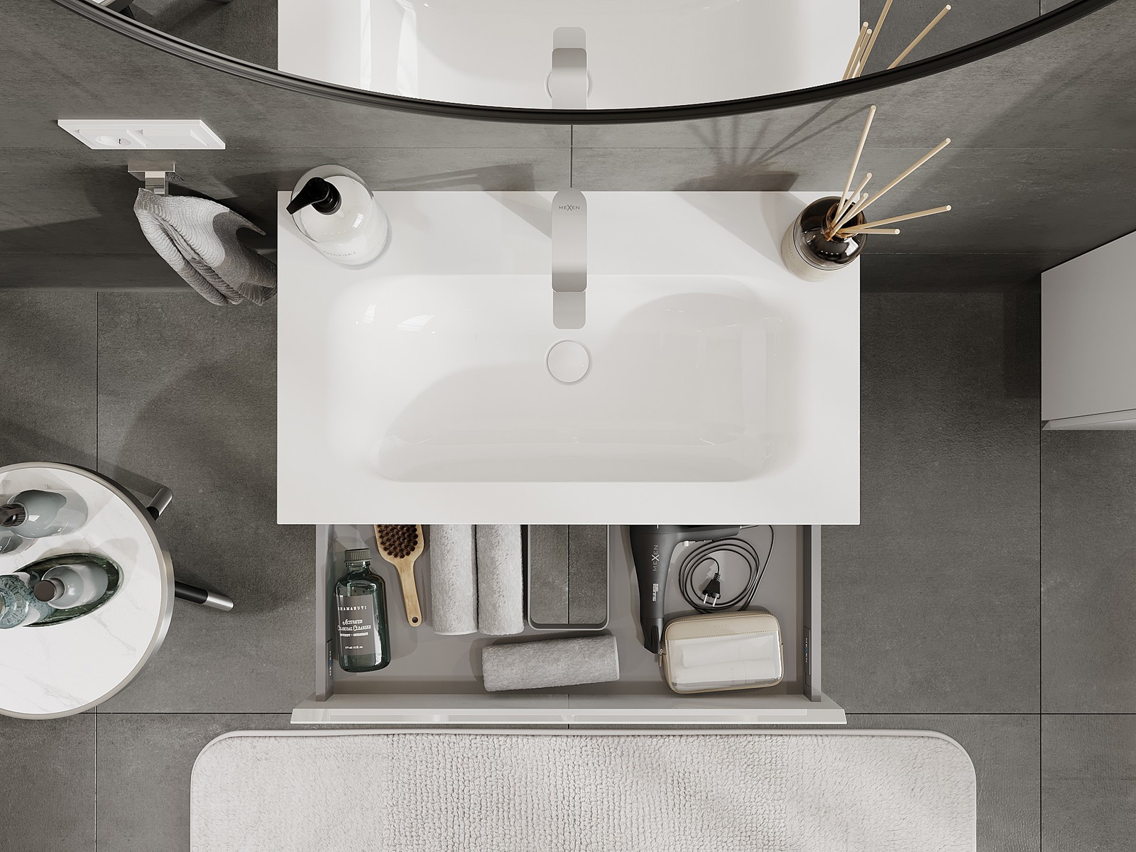 Mexen Orio badrumsskåp 80 cm med handfat Vela, 1 låda, vit högglans - 91A10-08023-1-BF00-W23M00