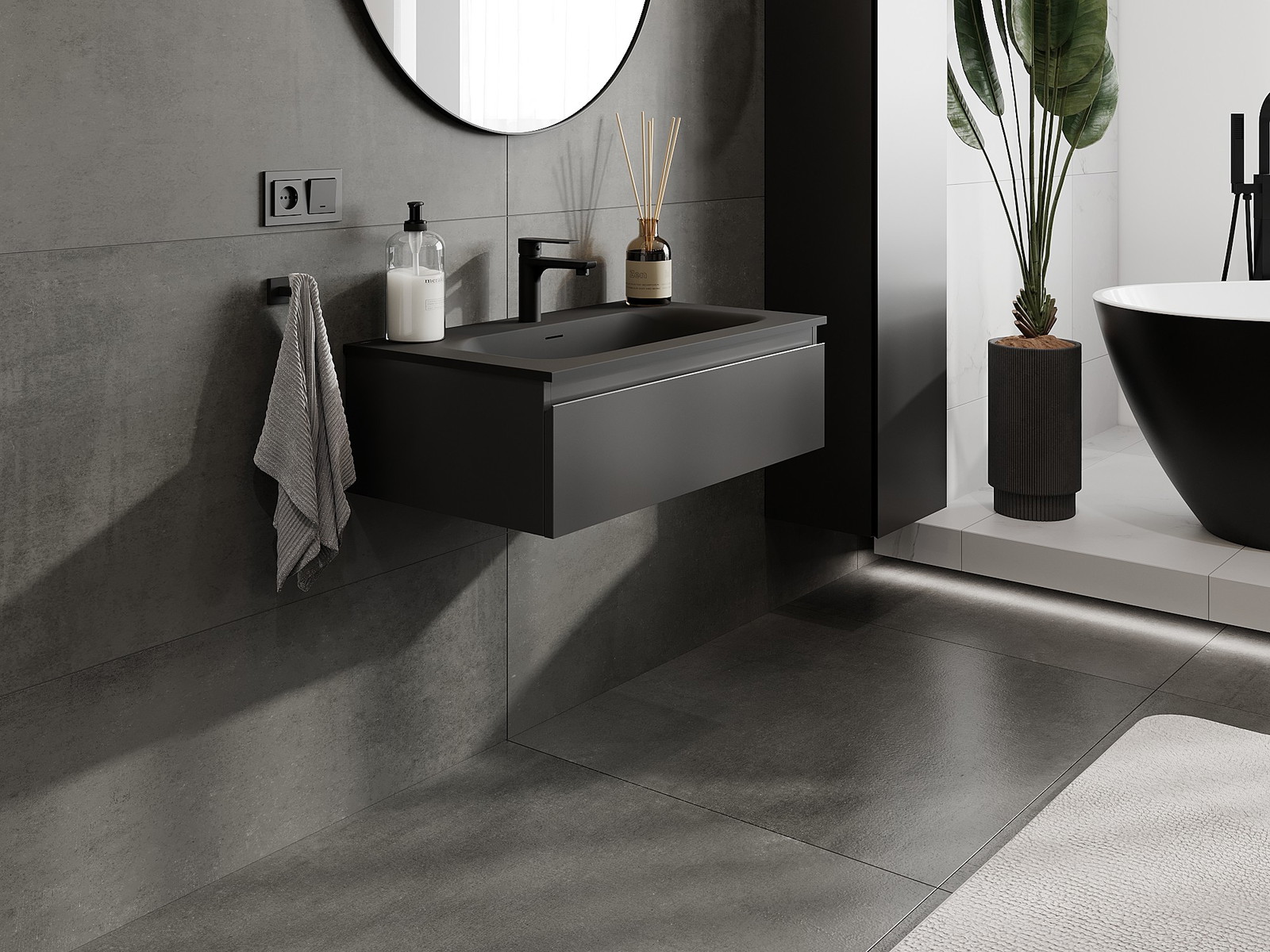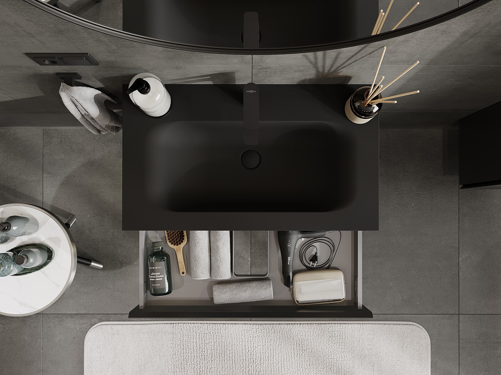 Mexen Orio badrumsskåp 80 cm med handfat Vela, 1 låda, svart matt - 91A10-08023-1-BF71-W23M71