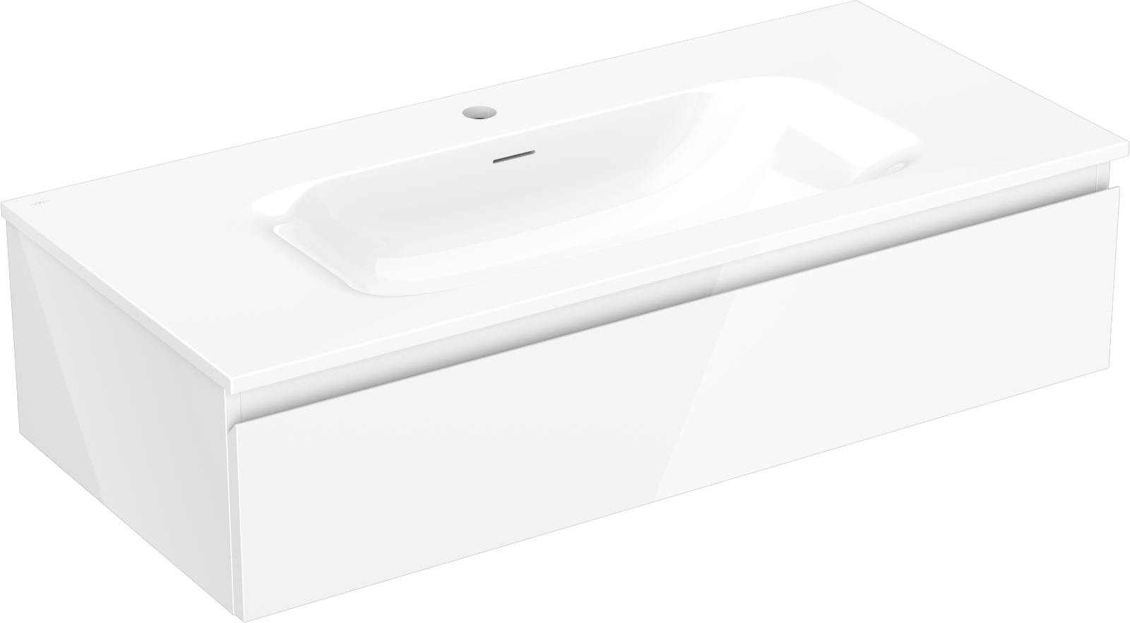 Mexen Orio badrumsskåp 100 cm med handfat Vela, 1 låda, vit glans - 91A10-10023-1-BF00-W23M00