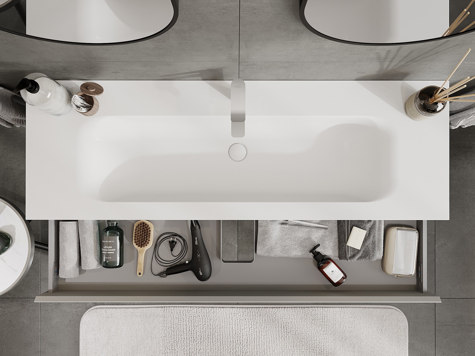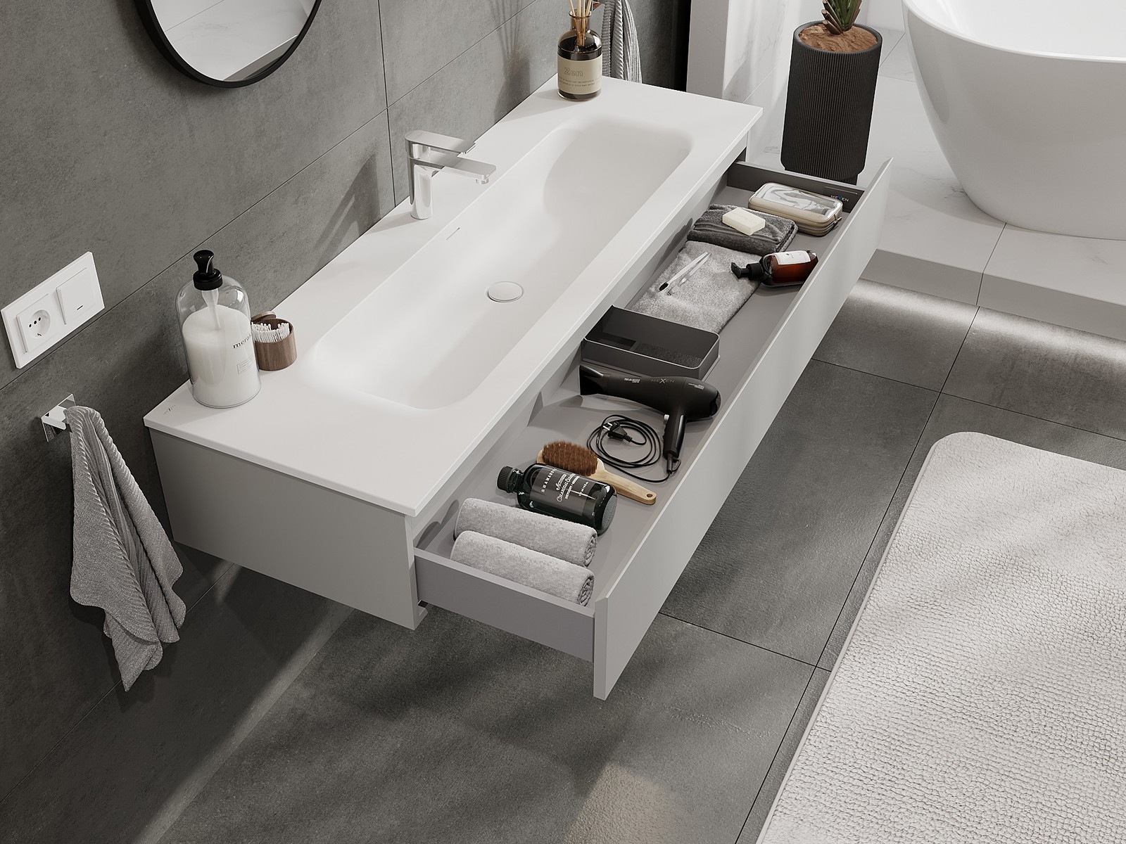 Mexen Orio badrumsskåp 140 cm med tvättställ Vela, 1 låda, grå matt/vit matt - 91A10-14023-1-BF62-W23M01
