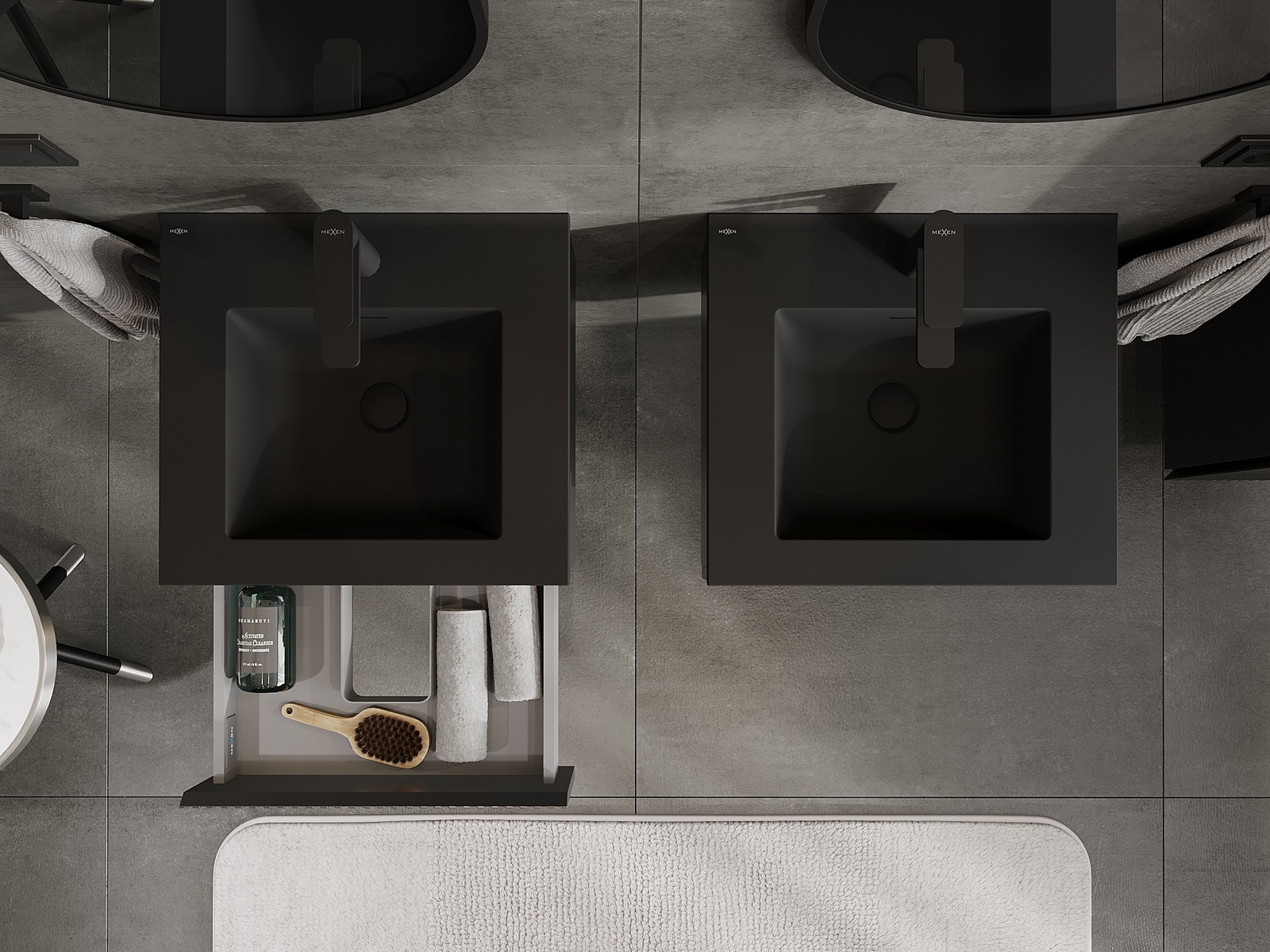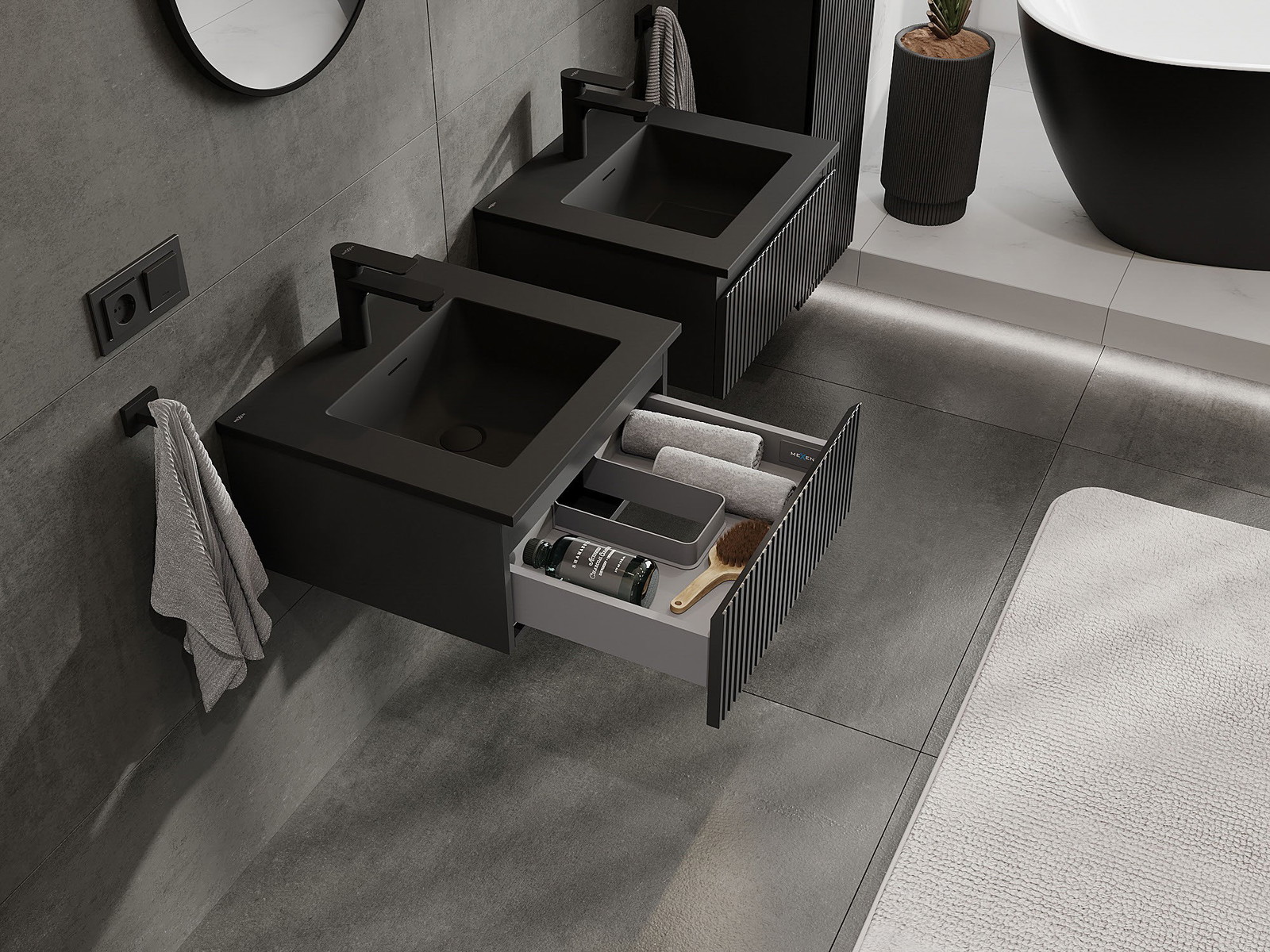 Mexen Rivel Badrumsskåp 50 cm med handfat Otis, 1 låda, räfflad, svart matt - 91A20-05023-1-BF71-W18M71