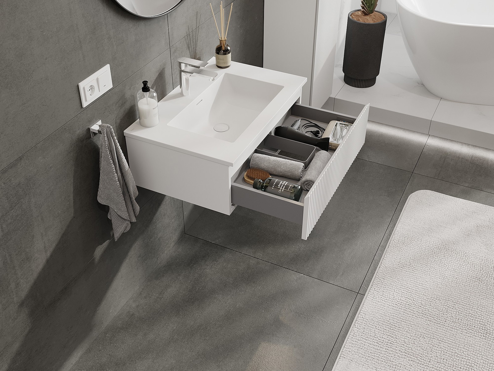 Mexen Rivel badrumsskåp 70 cm med handfat Otis, 1 låda, räfflad, vit matt - 91A20-07023-1-BF01-W18M01