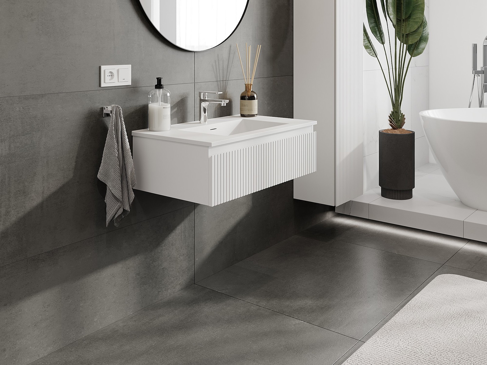 Mexen Rivel 80 cm badrumsskåp med handfat Otis, 1 låda, räfflad, vit matt - 91A20-08023-1-BF01-W18M01