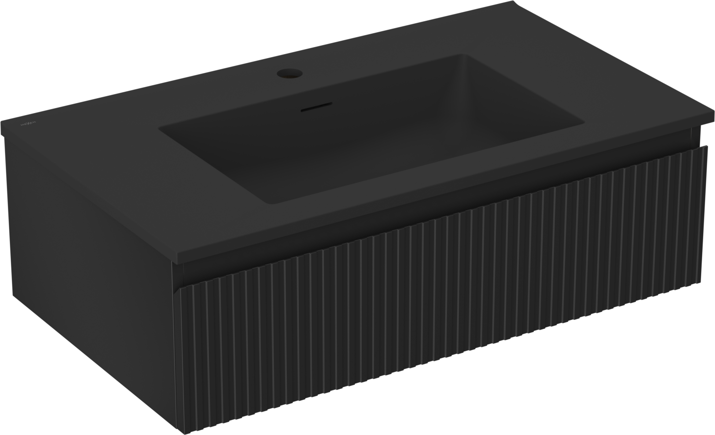 Mexen Rivel badrumsskåp 80 cm med handfat Otis, 1 låda, ribbad, svart matt - 91A20-08023-1-BF71-W18M71