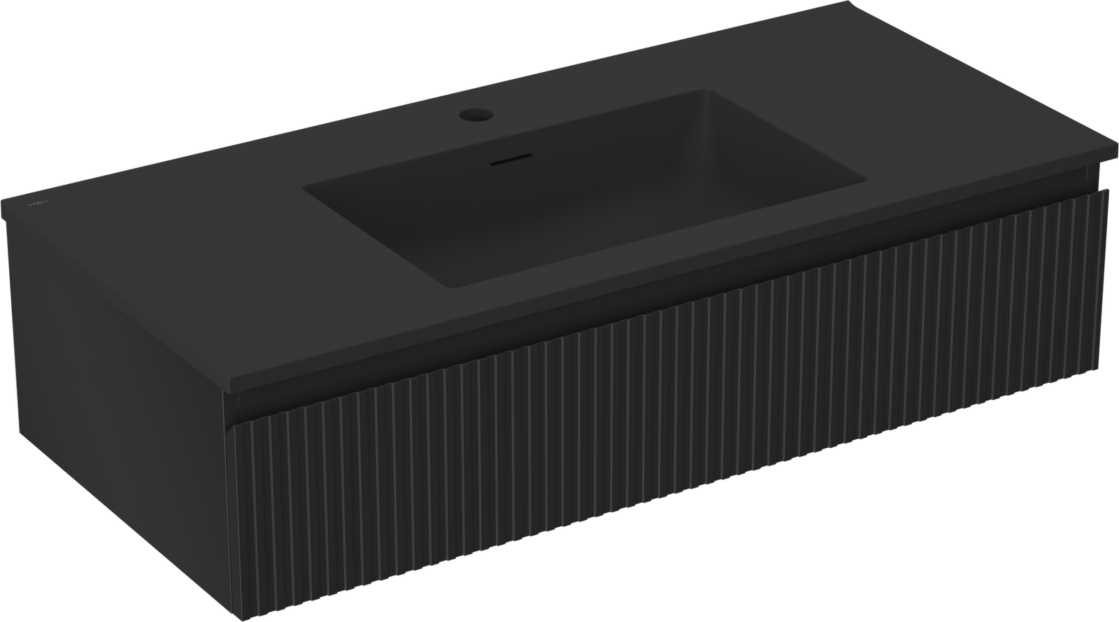 Mexen Rivel badrumsskåp 100 cm med handfat Otis, 1 låda, räfflad, svart matt - 91A20-10023-1-BF71-W18M71