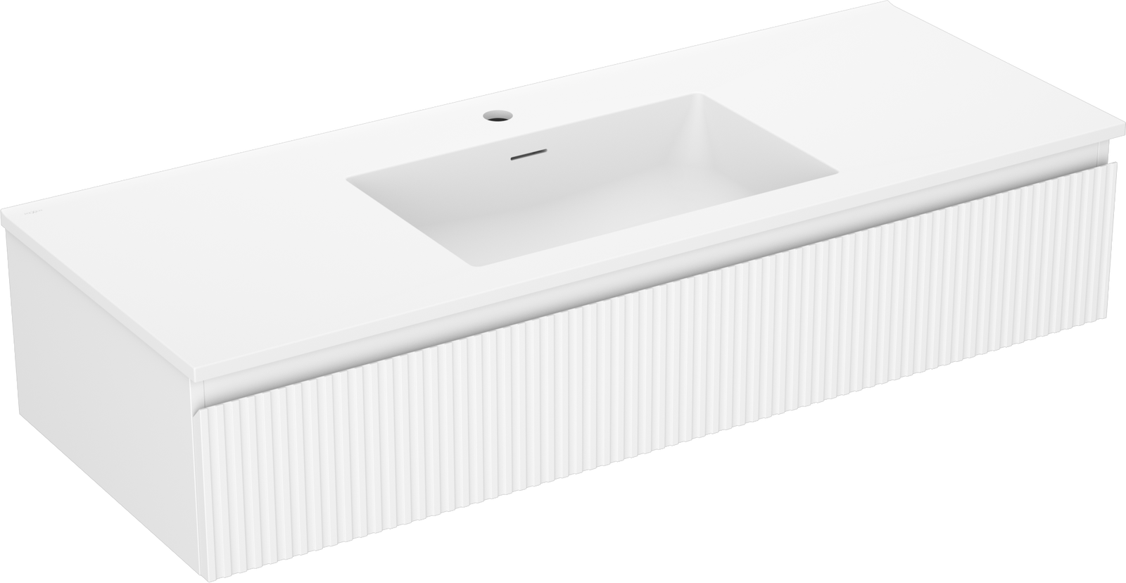 Mexen Rivel badrumsskåp 120 cm med handfat Otis, 1 låda, räfflad, vit matt - 91A20-12023-1-BF01-W18M01