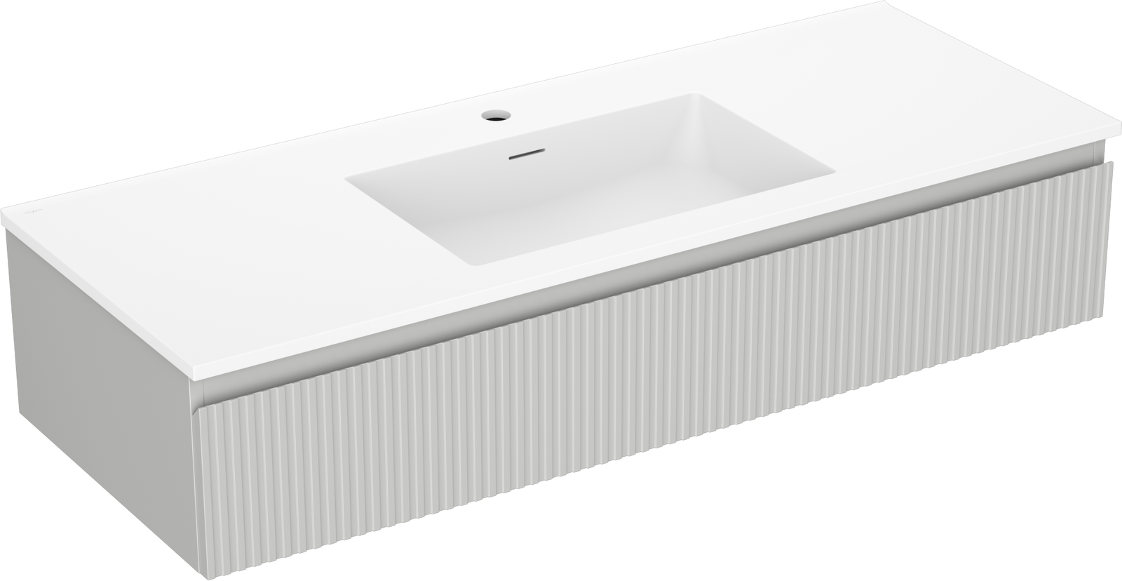 Mexen Rivel badrumsskåp 120 cm med handfat Otis, 1 låda, räfflad, grå matt/vit matt - 91A20-12023-1-BF62-W18M01