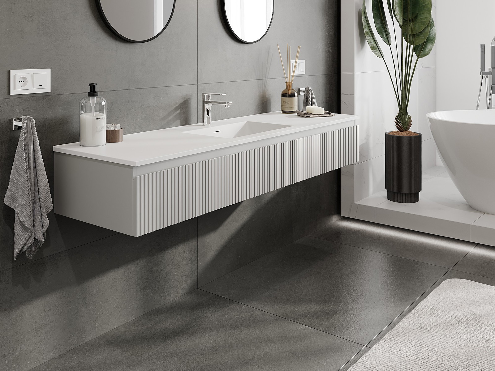 Mexen Rivel 160 cm badrumsskåp med Otis tvättställ, 1 låda, räfflad, grå matt/vit matt - 91A20-16023-1-BF62-W18M01