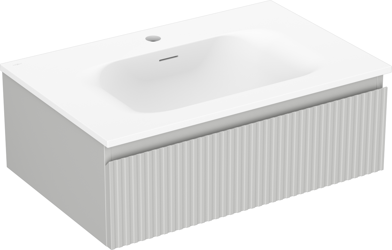 Mexen Rivel badrumsskåp 70 cm med tvättställ Vela, 1 låda, räfflad, grå matt/vit matt - 91A20-07023-1-BF62-W23M01