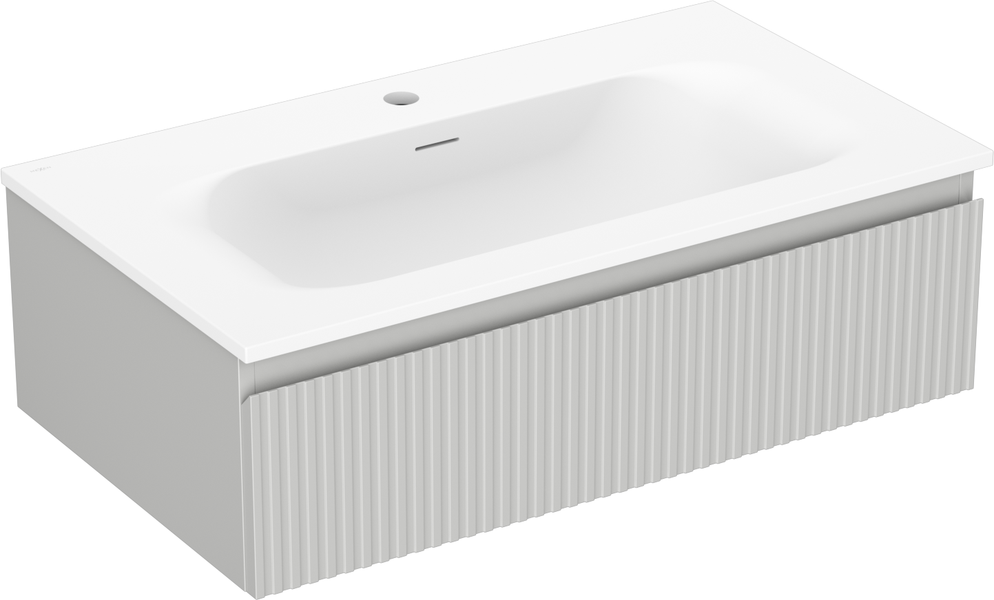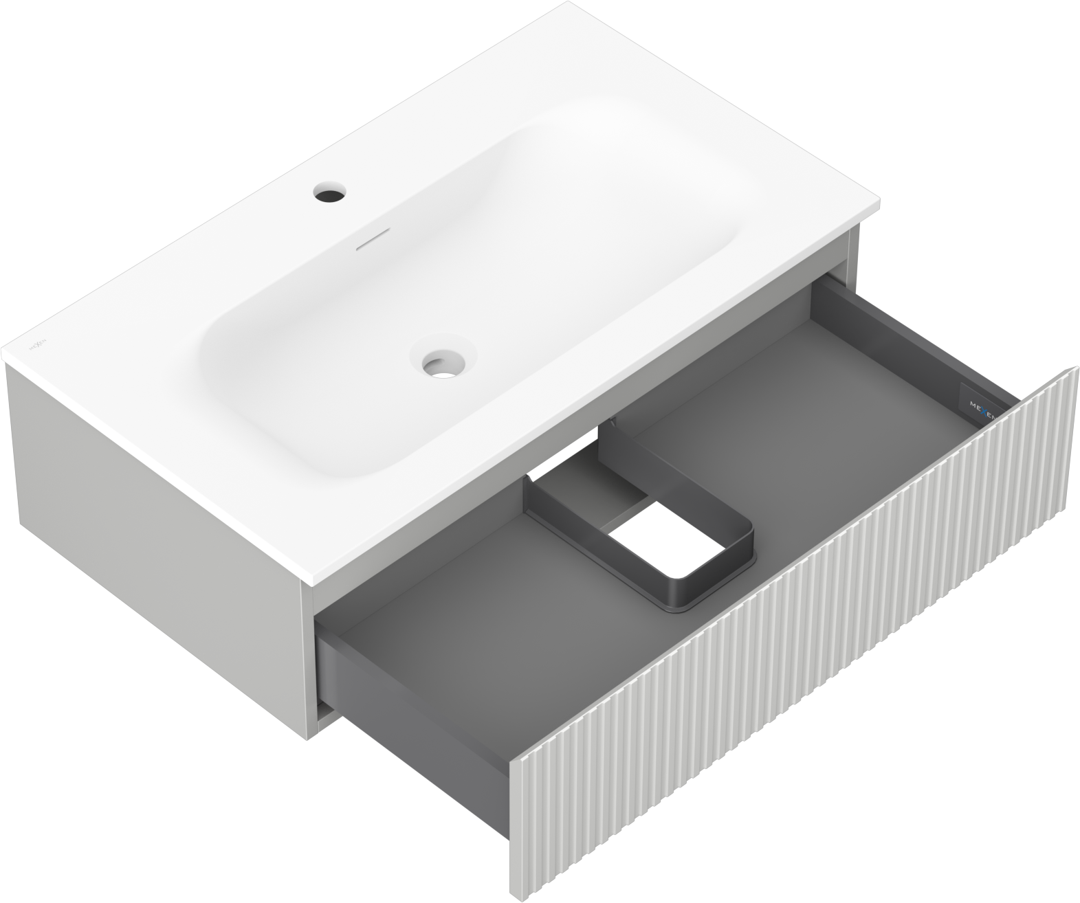 Mexen Rivel badrumsskåp 80 cm med handfat Vela, 1 låda, räfflad, grå matt/vit matt - 91A20-08023-1-BF62-W23M01