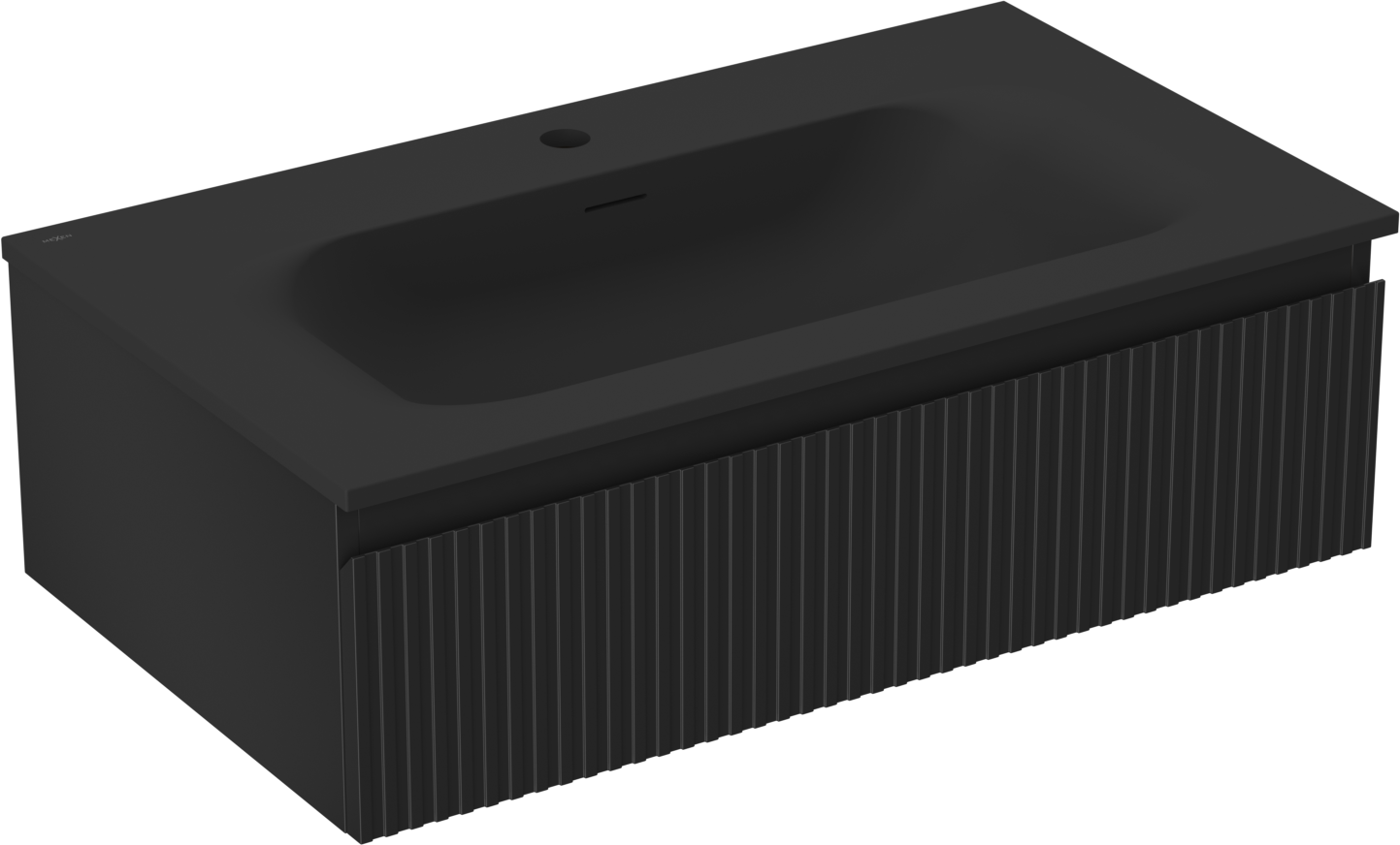 Mexen Rivel 80 cm badrumsskåp med handfat Vela, 1 låda, räfflad, svart matt - 91A20-08023-1-BF71-W23M71