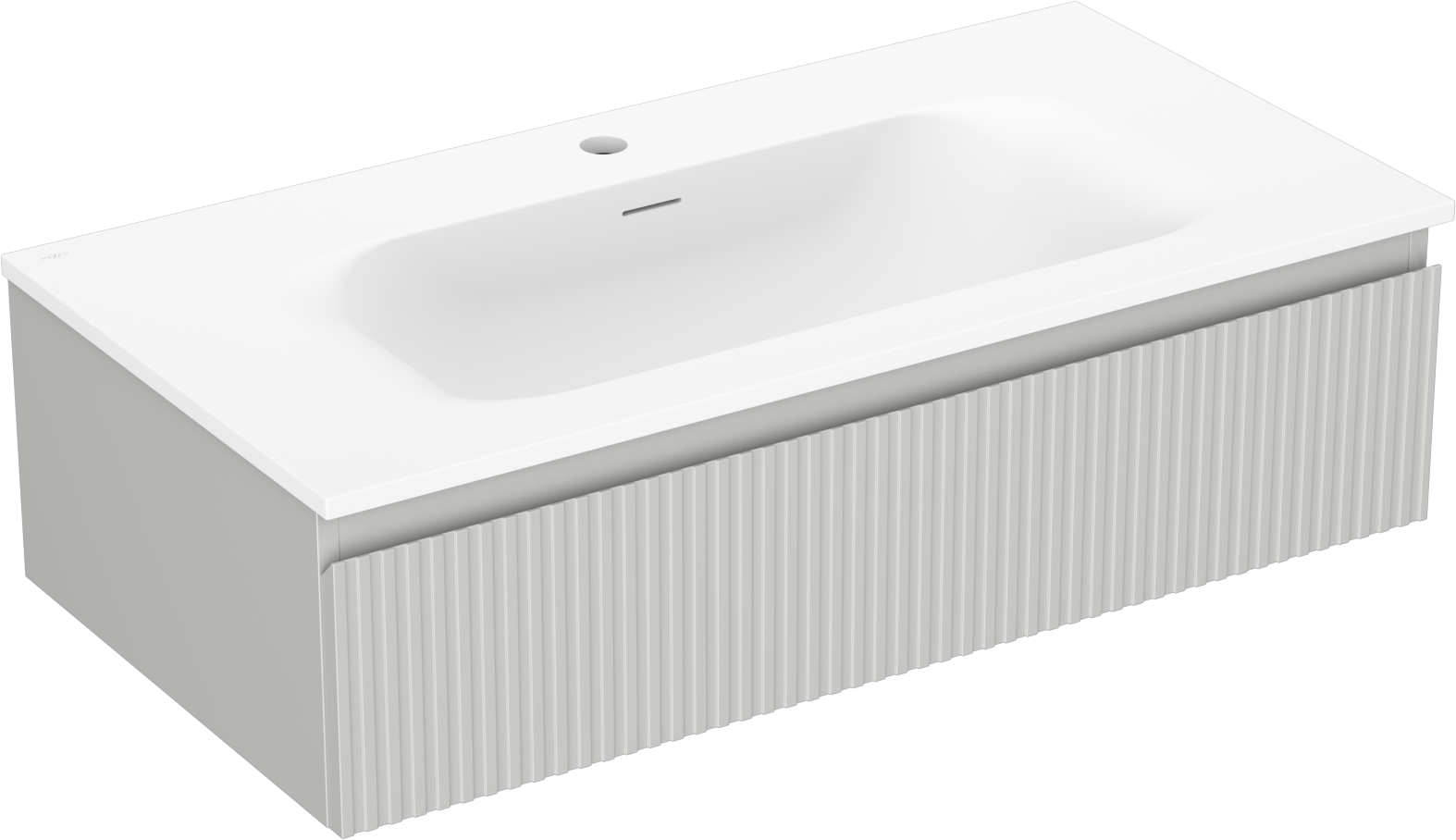 Mexen Rivel badrumsskåp 90 cm med tvättställ Vela, 1 låda, räfflad, grå matt/vit matt - 91A20-09023-1-BF62-W23M01