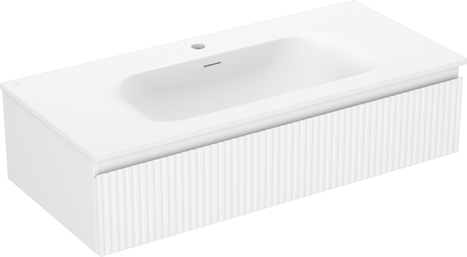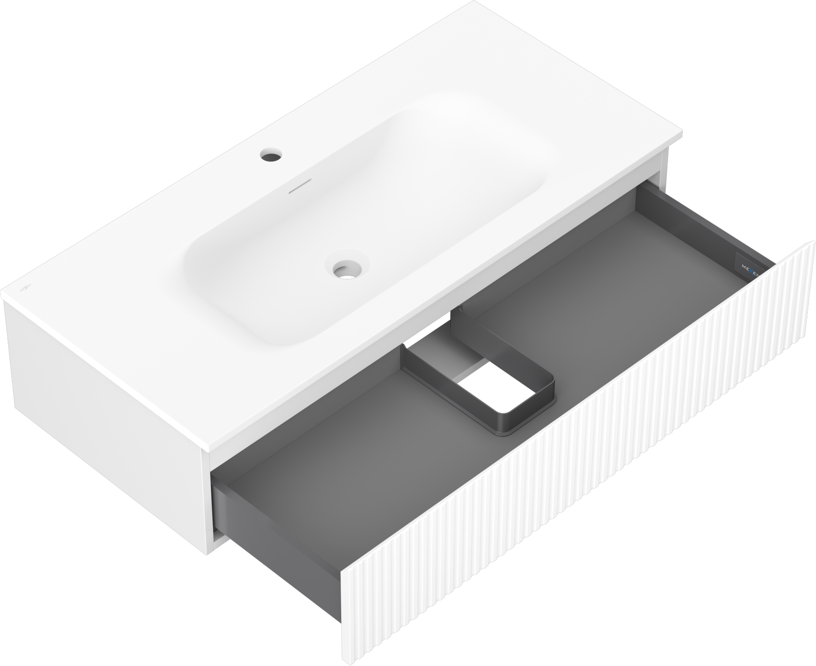 Mexen Rivel badrumsskåp 100 cm med tvättställ Vela, 1 låda, spårad, vit matt - 91A20-10023-1-BF01-W23M01
