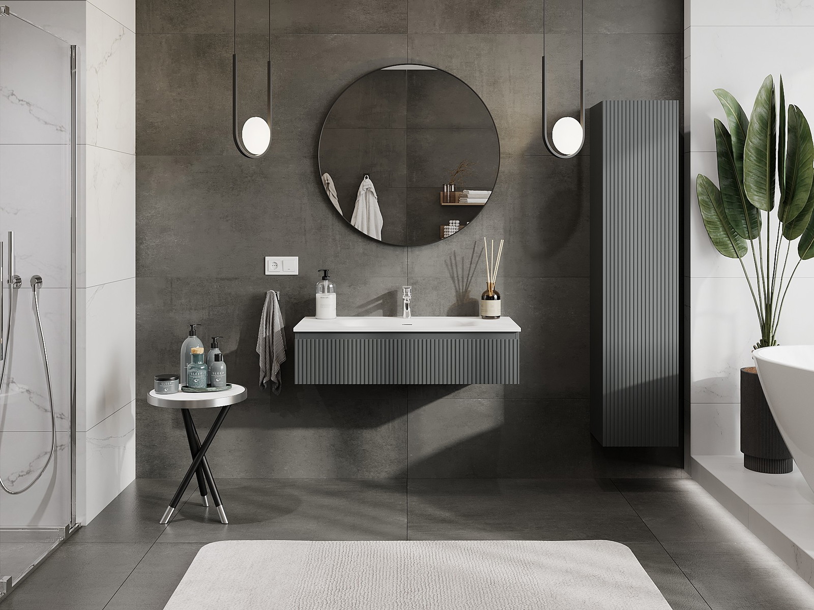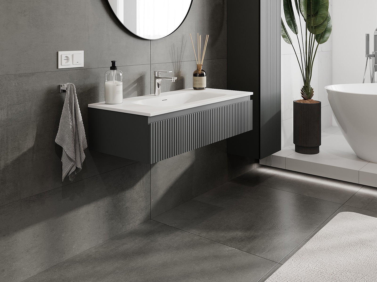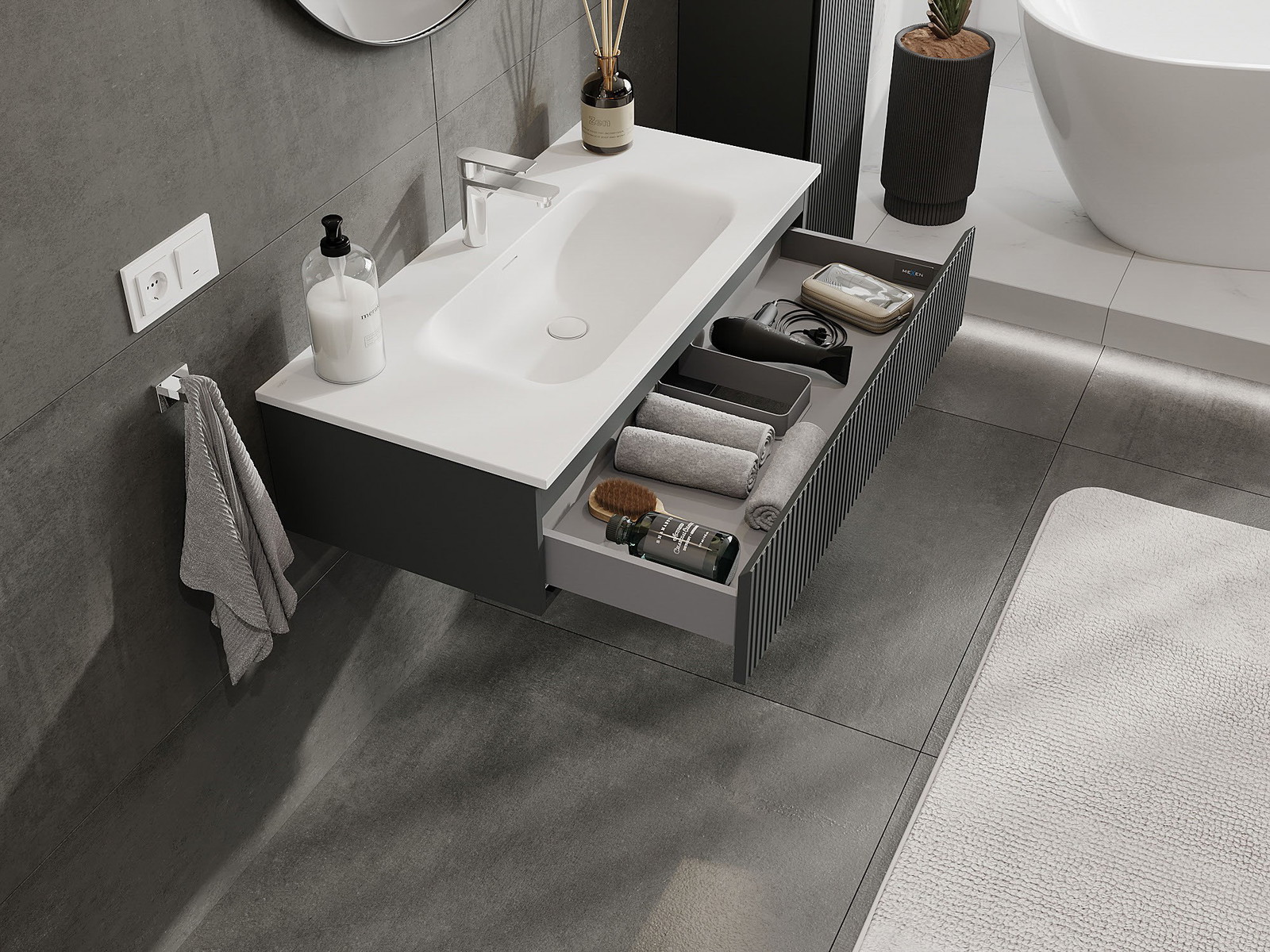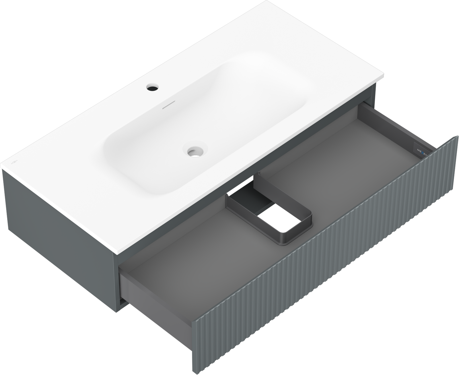 Mexen Rivel badrumsskåp 100 cm med handfat Vela, 1 låda, ribbad, grafit matt/vit matt - 91A20-10023-1-BF66-W23M01