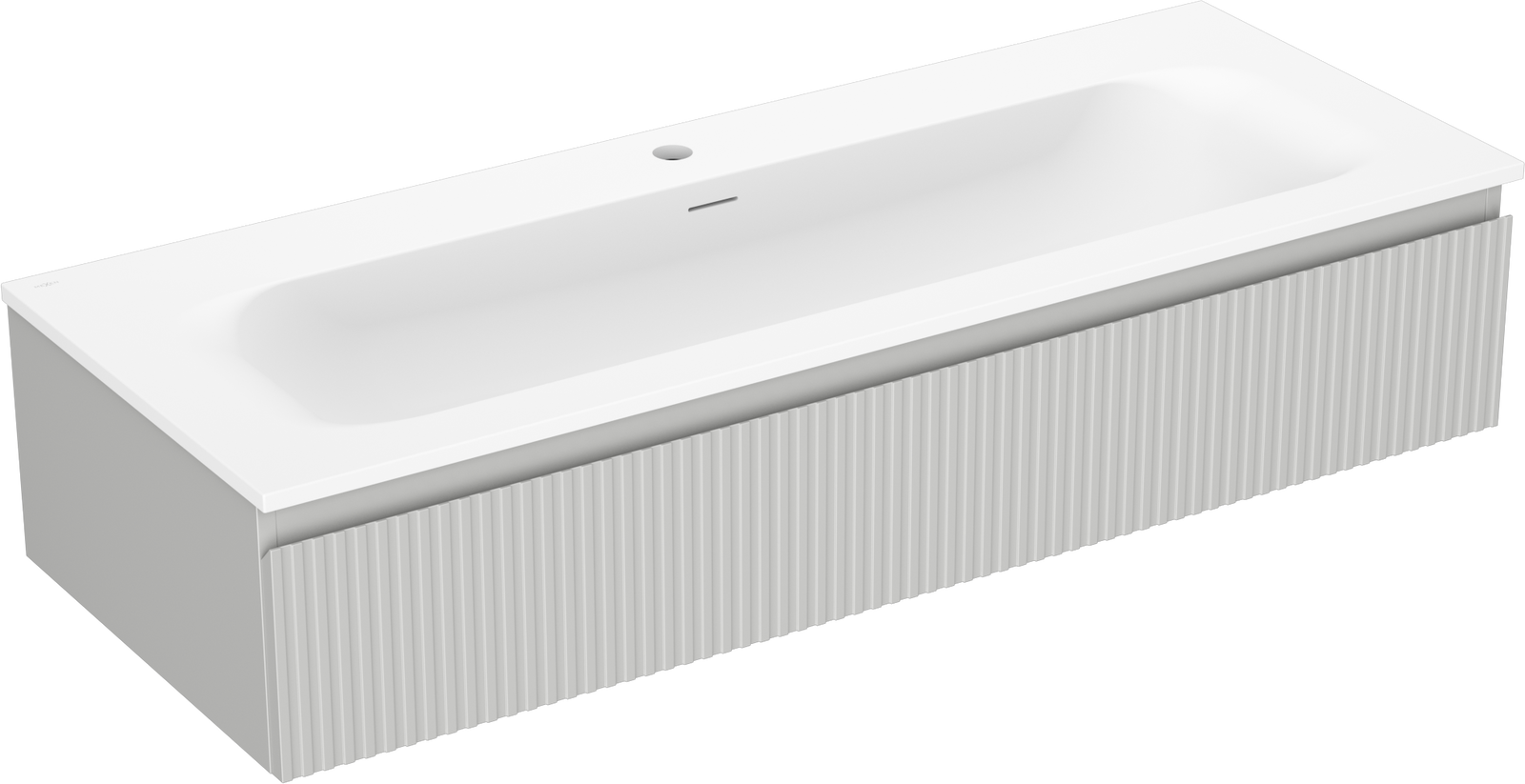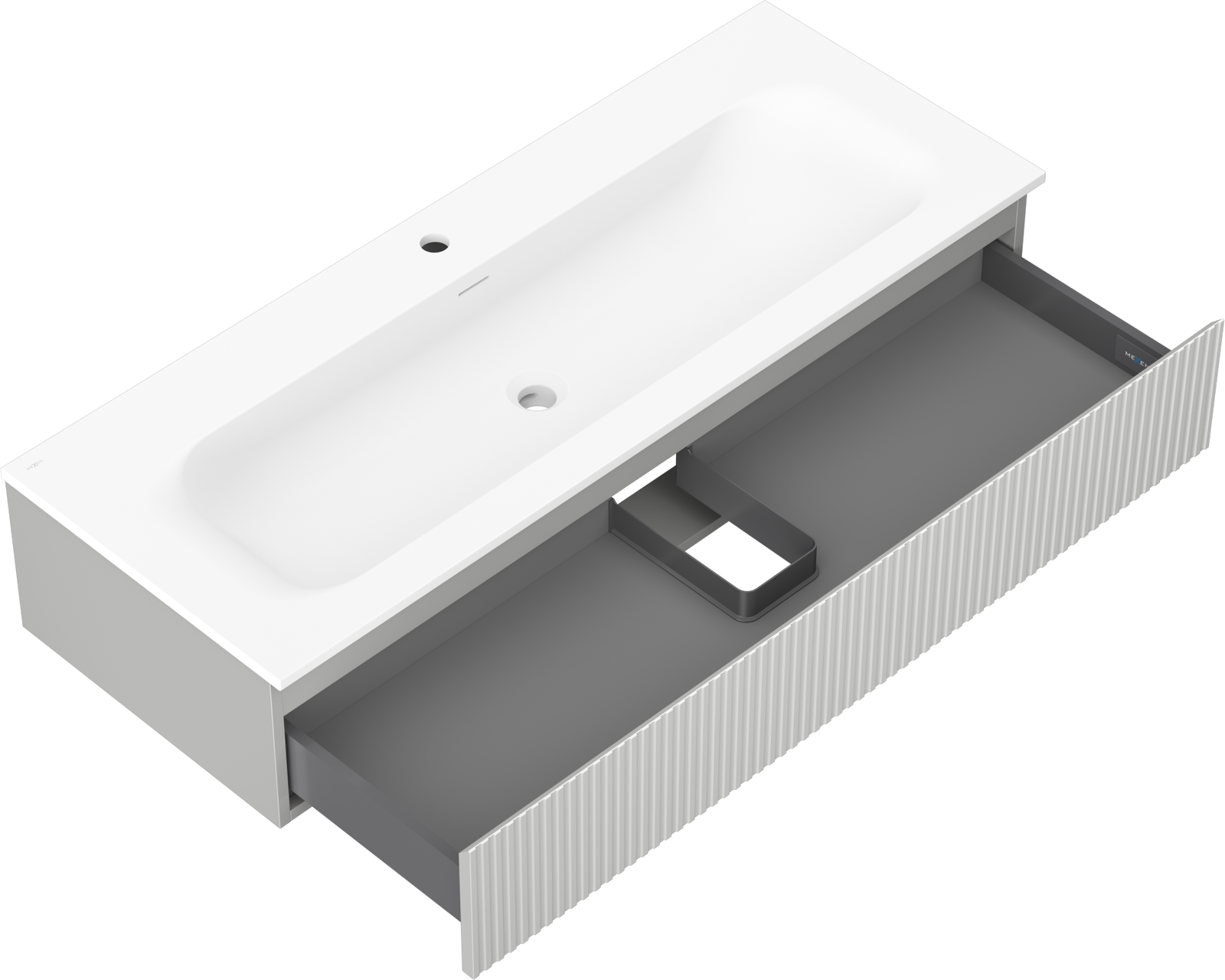 Mexen Rivel badrumsskåp 120 cm med handfat Vela, 1 låda, räfflad, grå matt/vit matt - 91A20-12023-1-BF62-W23M01