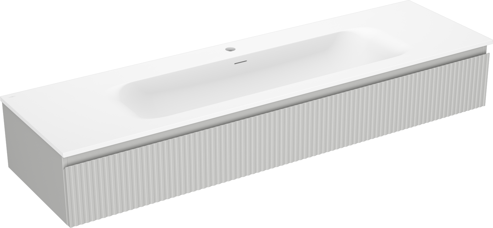 Mexen Rivel 140 cm badrumsskåp med handfat Vela, 1 låda, ribbad, grå matt/vit matt - 91A20-16023-1-BF62-W23M01