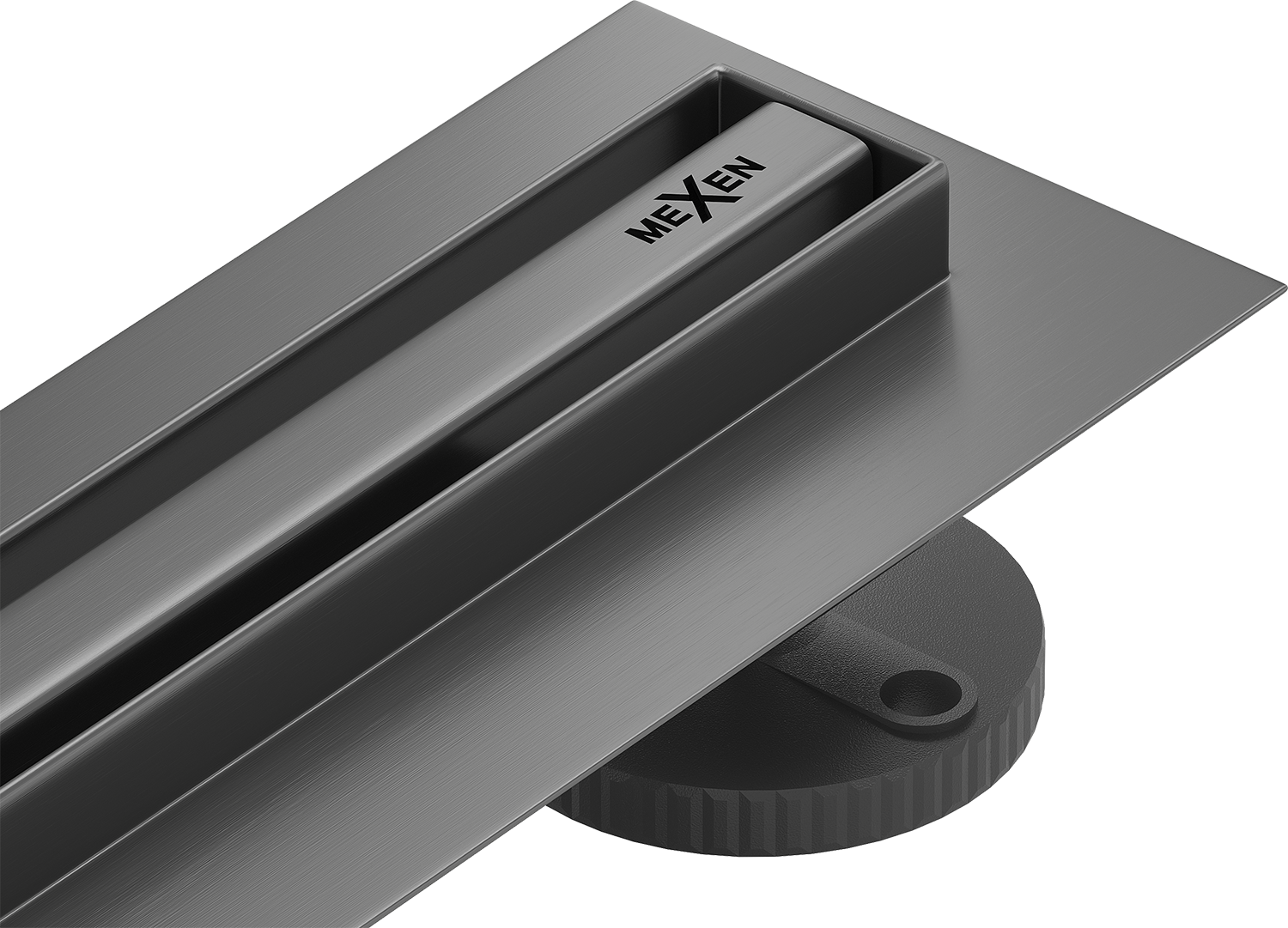 Mexen Flat 360° Slim roterbar linjär avlopp 130 cm, borstad kanonsvart - 1E41130