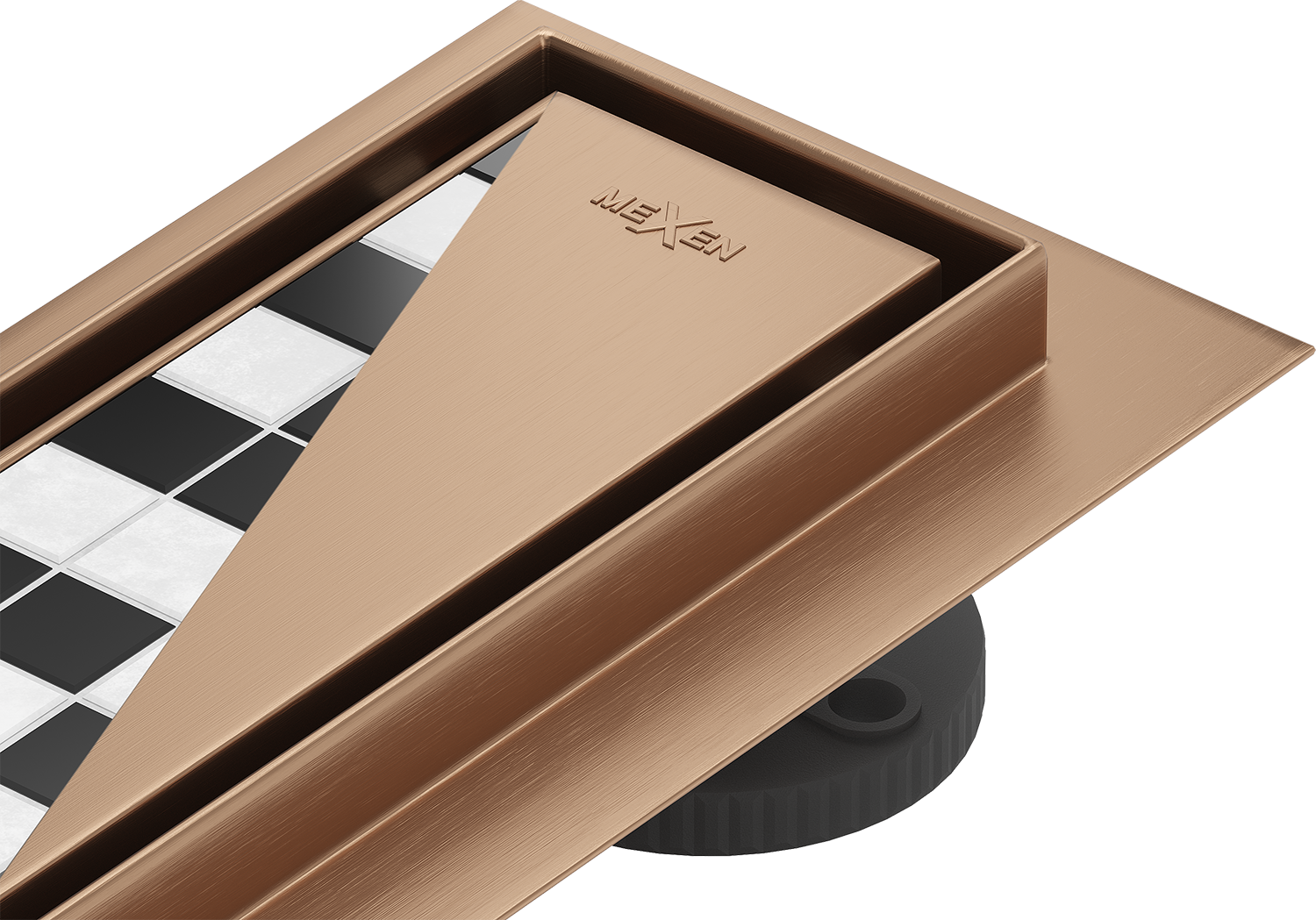 Mexen Flat 360° M13 linjärt roterande avlopp 2 i 1 80 cm, borstad koppar - 1C10080-40