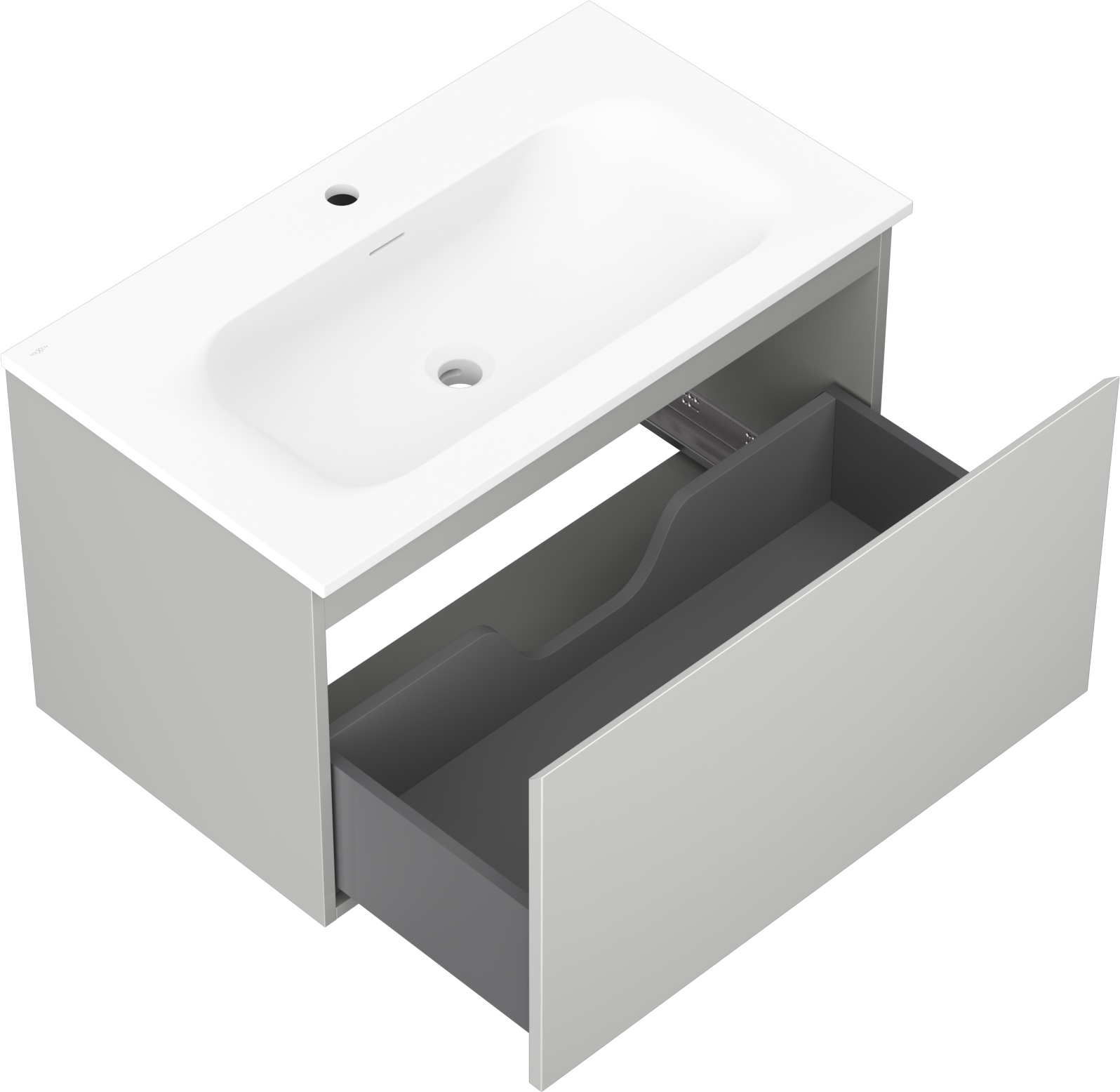 Utskärningen i lådan är utformad på ett sådant sätt att den rymmer vattenlåset som är nödvändigt i tvättställsinstallationer. Tack vare detta kan möbeln installeras fullt ut funktionellt, utan att behöva avstå från utrymme i lådan för installationen.
