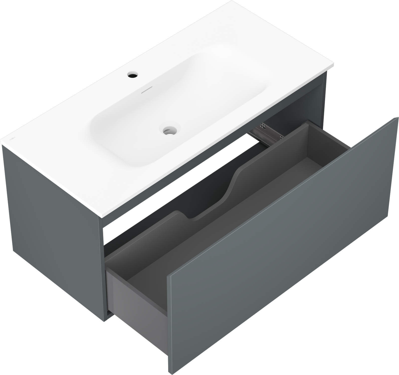 Mexen Orio badrumsskåp 100 cm med handfat Vela, 1 låda, grafit matt/vit matt - 91A10-10047-1-BF66-W23M01