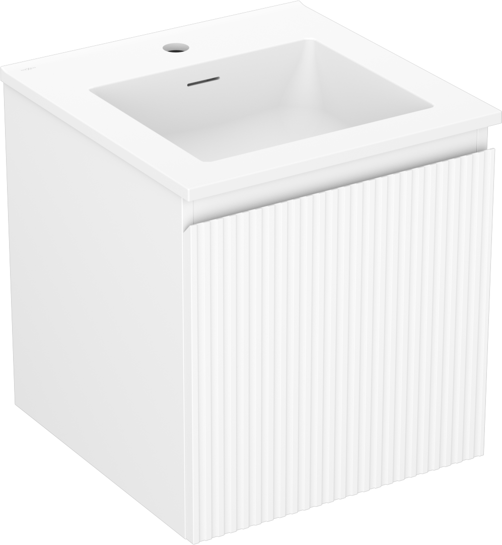 Mexen Rivel badrumsskåp 45 cm med handfat Otis, 1 låda, räfflad, vit matt - 91A20-04547-1-BF01-W18M01